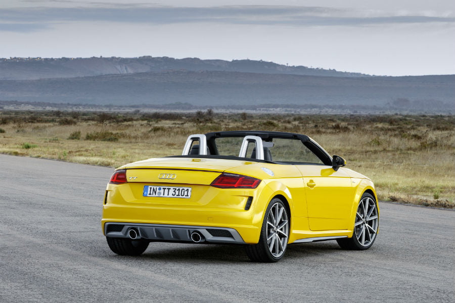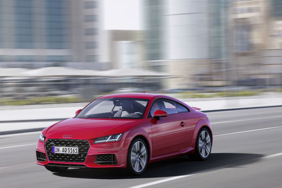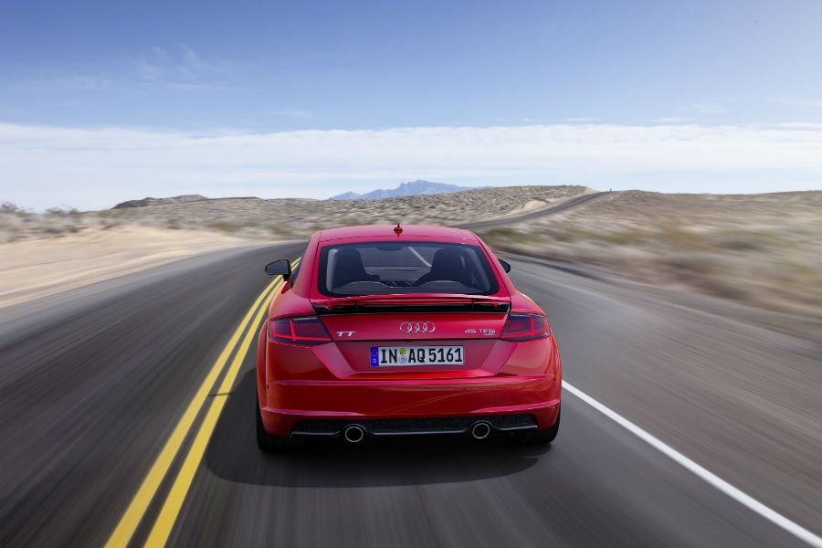 Αρχής γενομένης από το χαρακτηριστικό που καθιέρωσε το TT στην συνείδηση του κοινού – την εμφάνιση, δηλαδή- η Audi μεγάλωσε τις πλευρικές εισαγωγές αέρα στον μπροστινό προφυλακτήρα, υπογραμμίζοντας το πλάτος του αυτοκινήτου. Παράλληλα προσέθεσε τους κάθετους διαμορφωτές αέρα, που συναντάμε στο κορυφαίο TT RS (με την διαφορά ότι εδώ εξυπηρετούν καθαρά διακοσμητικό χαρακτήρα). Στο πίσω μέρος οι οριζόντιες γραμμές τονίζουν κι αυτές το πλάτος του γερμανικού κουπέ, ενώ το σήμα κατατεθέν-αλουμινένιο καπάκι της βενζίνης δεν έχει πια τάπα από κάτω. Όπως δηλώνει η Audi, αυτή η λεπτομέρεια αφορά στη συνάφεια του ΤΤ με τα αγωνιστικά αυτοκίνητα, στα οποία η μάνικα της βενζίνης μπαίνει απευθείας ώστε να εξοικονομείται χρόνος στους ανεφοδιασμούς. Προαιρετικά διατίθενται προβολείς με LED ή τεχνολογία Matrix LED, ενώ το πακέτο S Line περιλαμβάνει εμπρός splitter, κεντρική εισαγωγή σε μαύρο χρώμα, πλαϊνές ποδιές και ανανεωμένο πίσω διαχύτη μαζί με διπλές απολήξεις της εξάτμισης-μια παραπομπή στο TT Quattro 225 1ης γενιάς.