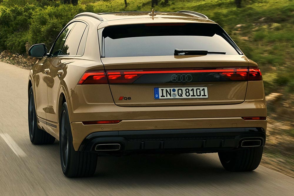 Εξωτερικά και συγκεκριμένα στο εμπρός τμήμα του αμαξώματός του, τα βλέμματα πέφτουν απευθείας πάνω στην ανασχεδιασμένη μεγάλη οκταγωνική μάσκα Audi Singleframe με το νέο μοτίβο. Προκειμένου να ξεχωρίσουν η βασική έκδοση, το πακέτο S line και το μοντέλο S με την πρώτη ματιά, το προστατευτικό κάτω μέρος, η επένδυση προσάρτησης της πόρτας και ο διαχύτης διατίθενται σε χρώματα που υπογραμμίζουν τη στιβαρή του εμφάνιση. Ακόμα πιο σπορτίφ είναι εξωτερικά το SQ8 TFSI, όπου οι ασημί επενδύσεις στους προφυλακτήρες και στη μάσκα κάνουν αμέσως τη διαφορά.