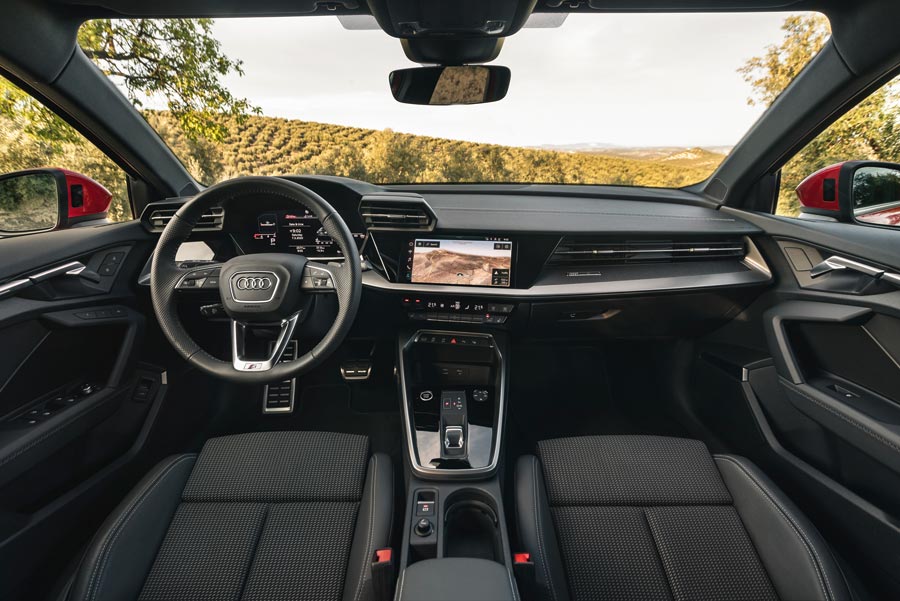 Εντυπωσιακή είναι και η εικόνα του εσωτερικού του νέου Audi A3, όπου οι ακριβείς οριζόντιες γραμμές και οι επιφάνειες με σαφή σχεδιασμό τονίζουν το πλάτος του. Επιπλέον, χρησιμοποιεί οικεία στοιχεία από τα μεγαλύτερα μοντέλα της μάρκας και είναι εξοπλισμένο με οθόνη αφής 10,1 ιντσών ως στάνταρ, καθώς και με ψηφιακό πίνακα οργάνων 10,25 ιντσών.