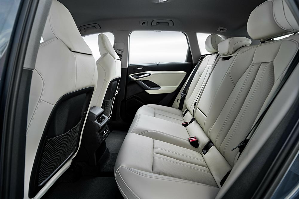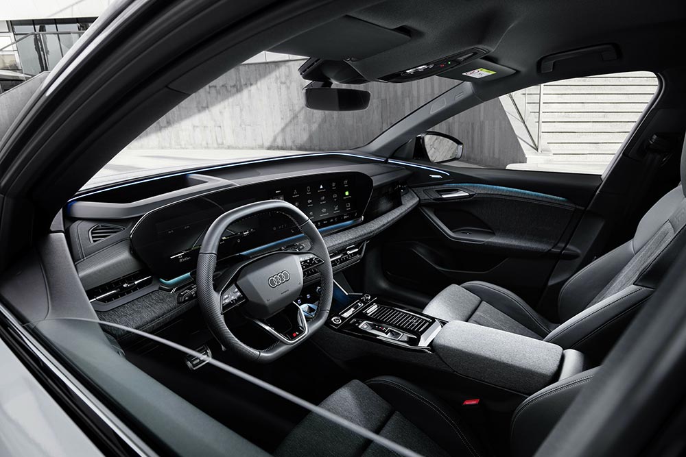 Εκτός από την αίσθηση της ευρυχωρίας, αυτή η φιλοσοφία ενισχύει την προσφερόμενη άνεση, μαζί με τους χαμηλά τοποθετημένους λεπτούς οριζόντιους αεραγωγούς. Ένα σετ χειριστηρίων σε μαύρο πάνελ είναι ενσωματωμένο στη λαβή της πόρτας του οδηγού και εναρμονίζεται κατάλληλα με το μοντέρνο εσωτερικό. Περιλαμβάνει τις πιο σημαντικές λειτουργίες, όπως ρυθμίσεις των καθρεπτών, λειτουργίες του καθίσματος και ρυθμίσεις φωτός και ορατότητας. Η Audi έχει κάνει χρήση βιώσιμων υλικών, όπως 100% ανακυκλωμένο πολυεστέρα, ενώ ανάλογα το μοντέλο διαφέρει ο διάκοσμος και οι επενδύσεις. Στο μοντέλο S υπάρχουν σπορ καθίσματα με μικροΐνες Dinamica ή λεπτό δέρμα Nappa. Εναλλακτικά διατίθενται ξύλινα ένθετα σε διάφορες αποχρώσεις και υφές, όπως και ματ βουρτσισμένο αλουμίνιο.