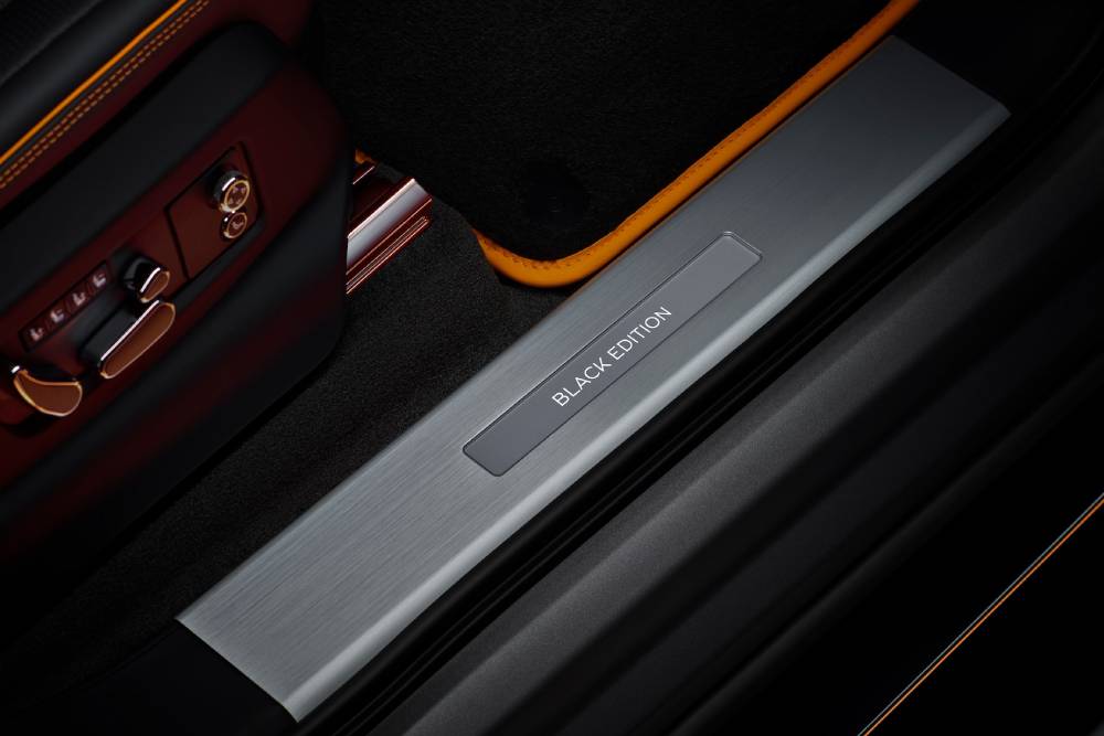 Καμιά άλλη Bentley σε 105 χρόνια πορείας, ούτε παραγωγής μήτε αγωνιστική, δεν είχε αυτή τη λεπτομέρεια. Κάτι που αυτομάτως δίνει στην Bentayga Black Edition ιστορικής εμβέλειας σημασία, έστω κι αν επί της ουσίας δεν είναι κάτι άλλο από ειδική έκδοση με διαφορετικά χρώματα, body kit και εσωτερικό «πνιγμένο» στο συνδυασμό μαύρου-χρυσαφί (και πορτοκαλί, μέσω του ambient φωτισμού).