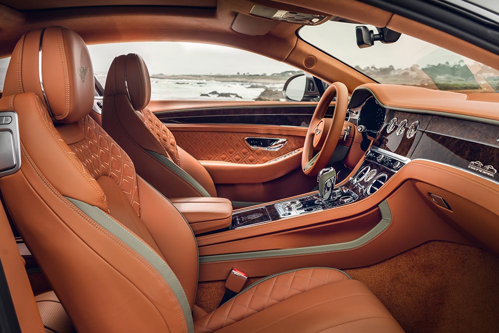 Το εσωτερικό της καλύπτεται με πλούσιο καφέ δέρμα, ενώ ξύλο καρυδιάς χρησιμοποιείται εκτενώς στο ταμπλό και σε διάφορα άλλα μέρη. Οι ραφές των καθισμάτων, καθώς και διάφορες άλλες λεπτομέρειες της καμπίνας είναι βαμμένες με πράσινο χρώμα που η Bentley αποκαλεί Special Green. Τέλος, στα μαρσπιέ εντοπίζονται ειδικά χρωμιωμένα στοιχεία που γράφουν «20 years of the Continental GT by Bentley Mulliner».