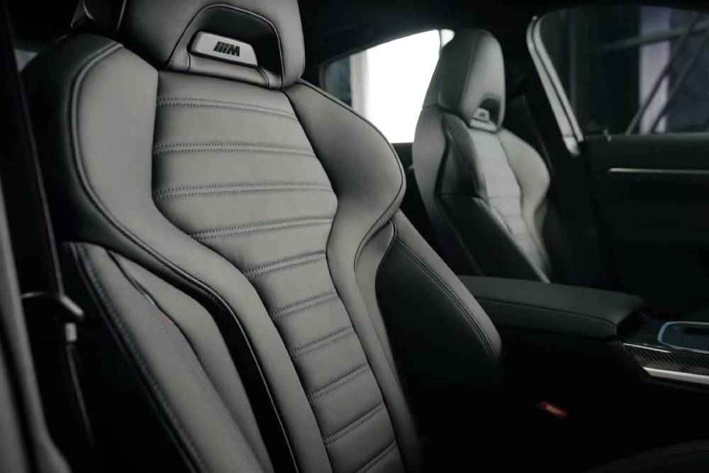 Στο εσωτερικό «κατάληψη» στο ενδιαφέρον κάνει το φαντασμαγορικό ταμπλό, με τις δυο οθόνες των 12,3 ιντσών (για τον ψηφιακό πίνακα οργάνων) και 14,9 ιντσών (για το σύστημα πολυμέσων) να κλέβουν πάσα εντύπωση. Ενθέσεις ανθρακονημάτων, νέο τιμόνι, μπάκετ της Recaro και αλουμινένια πεντάλ ολοκληρώνουν τις οπτικές και πρακτικές αναβαθμίσεις, συγκριτικά με την απλή i4.