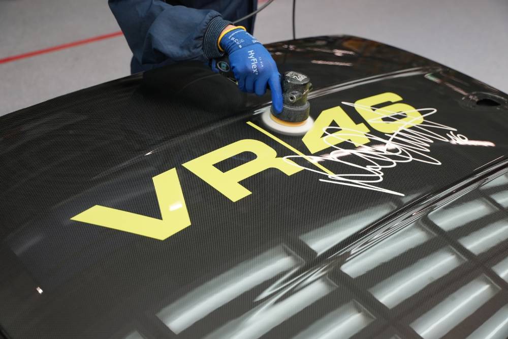 Στο εσωτερικό δεσπόζουν τα μπάκετ καθίσματα M Carbon διακοσμημένα με δέρμα Merino, σε μαύρο-μπλε χρωματικό συνδυασμό (Black/Night Blue), κίτρινη (Sao Paulo Yellow) alcantara στην περιοχή των ώμων και ένα επίσης κίτρινο λογότυπο «VR46» στα προσκέφαλα. Τα κίτρινα διακοσμητικά συνεχίζονται στο τιμόνι M Alcantara, ενώ στην κεντρική κονσόλα υπάρχει ένα σήμα που υποδηλώνει τον αύξοντα αριθμό παραγωγής (1/46 εν προκειμένω).