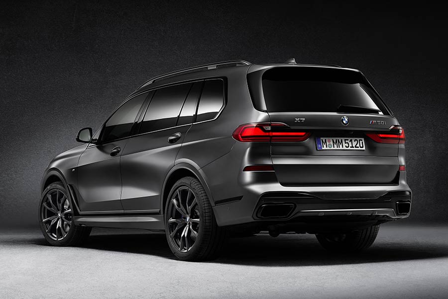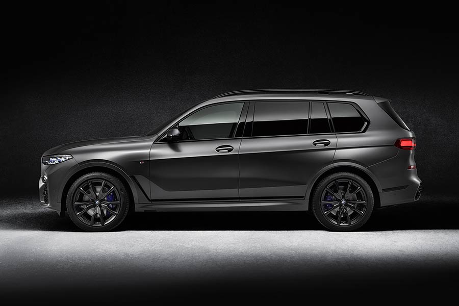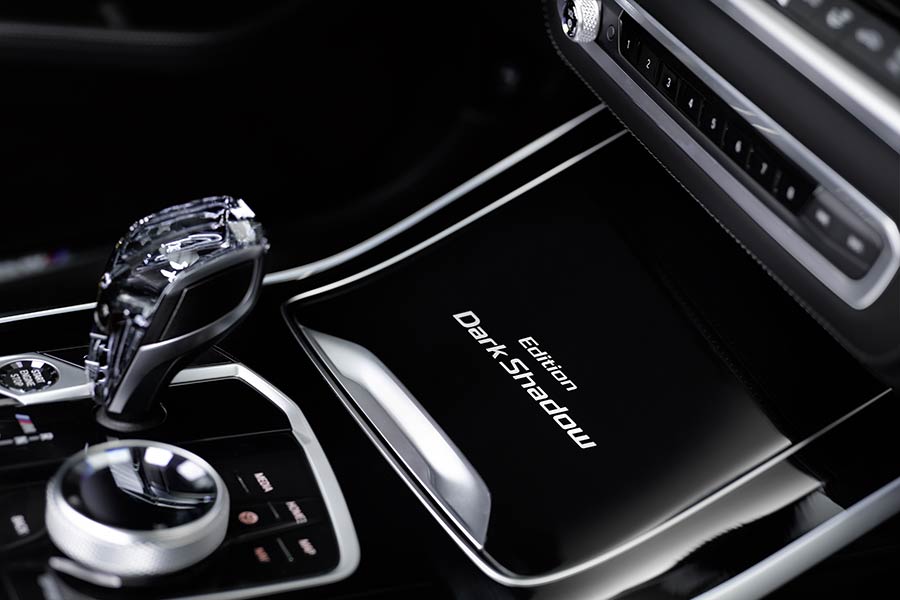 Εκτός από το σατινέ γκρι χρώμα του αμαξώματος, η X7 Edition Dark Shadow ξεχωρίζει εξωτερικά και από τα μαύρα γυαλιστερά τμήματα, όπως είναι στη μάσκα, στους πλαϊνούς αεραγωγούς του εμπρός προφυλακτήρα, στα πλαίσια των παραθύρων, στις ράγες οροφής και στις τραπεζοειδείς απολήξεις της εξάτμισης. Τη δυναμική του εικόνα ενισχύει περεταίρω το σπορ πακέτο M, καθώς και οι αποκλειστικές μαύρες ματ ζάντες αλουμινίου των 22 ιντσών. Οι ανώτερες επιδόσεις του κινητήρα συνοδεύονται από τον συναρπαστικό ισχυρό ήχο του σπορ συστήματος εξαγωγής Μ.