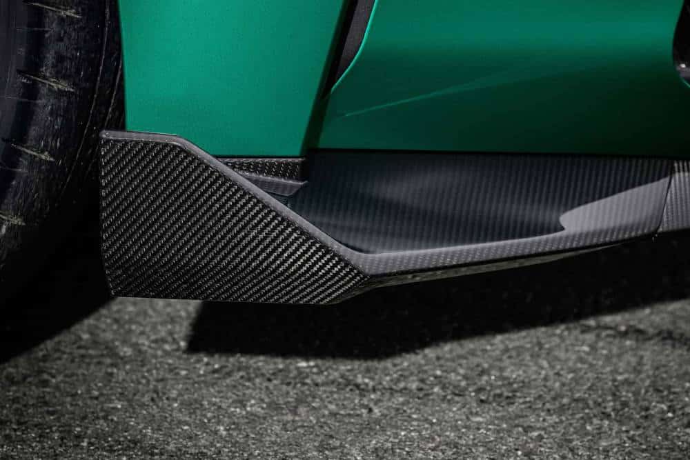 Εμφανισιακά η CS είναι σχεδόν ίδια με τη CSL. Τα χρώματα (Brooklyn Grey, Black Sapphire, Riviera Blue και Frozen Isle of Man Green των φώτο), το έντονο αεροδυναμικό πακέτο (splitter εμπρός, ποδιές, διαχύτης) συνοδεύεται από κόκκινες λεπτομέρειες, τις οποίες συναντάμε επίσης στην ανασχεδιασμένη μάσκα, τους αεραγωγούς του ανθρακονημάτινου καπό και την εξίσου carbon οροφή. Οι σφυρήλατες ζάντες (19 ιντσών μπροστά, 20 πίσω) είναι επίσης παρούσες, εδώ σε χρυσαφί χρώμα, όπως και τα κίτρινα LED ημέρας, ωστόσο λείπει το «Gurney flap» στην πόρτα του πορτμπαγκάζ. Στη θέση του ένα πιο διακριτικό διπλό spoiler, όμως πάρα πολύ δύσκολα να μην μπερδέψεις τη CS με τη CSL από έξω.
