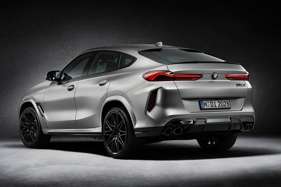 Οι υψηλής ποιότητας χρωματισμοί συνδυάζονται με ζάντες αλουμινίου M με σχέδιο ακτινών σχήματος αστεριού και πολύ γυαλιστερό Jet Black φινίρισμα που διατίθεται αποκλειστικά για τα τις ειδικές εκδόσεις. Οι ζάντες των 21 ιντσών μπροστά και 22 ιντσών πίσω, συνδυάζονται με ελαστικά διαφορετικών διαστάσεων εμπρός/πίσω. Ιδιαίτερο στιλιστικό ενδιαφέρον παρουσιάζουν στοιχεία του αμαξώματος από πλαστικό ενισχυμένο με ανθρακονήματα (CFRP). Όπως τα καλύμματα εξωτερικών καθρεπτών M Carbon των ειδικών εκδόσεων, η πίσω αεροτομή M Carbon της νέας BMW X6 M Competition αποπνέει μία διακριτική αγωνιστική αίσθηση. Κάλυμμα κινητήρα M Carbon είναι μία ακόμα λεπτομέρεια της έκδοσης First Edition.