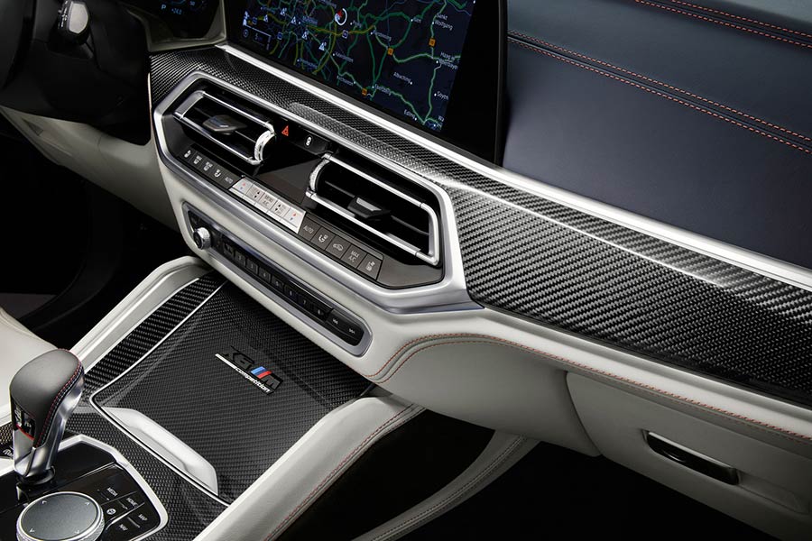 Στην πλουσιοπάροχη καμπίνα, η πλήρως δερμάτινη επένδυση BMW Individual Merino σε αποκλειστική διχρωμία Silverstone/Midnight Blue εναρμονίζεται με τους διαθέσιμους χρωματισμούς εσωτερικού της σειράς BMW Individual. Ένθετα από Black Alcantara στα μαξιλάρια των καθισμάτων και ραφή σε Sakhir Orange τονίζουν τη σπορ σχεδίαση των καθισμάτων πολλαπλών λειτουργιών M. Μία εντυπωσιακή ραφή δημιουργεί ελκυστικές αντιθέσεις στην επένδυση των θυρών και στο ταμπλό. Επηρεασμένη από τα δερμάτινο ταμπλό, η επένδυση οροφής BMW Individual από Alcantara υιοθετεί επίσης απόχρωση Midnight Blue.