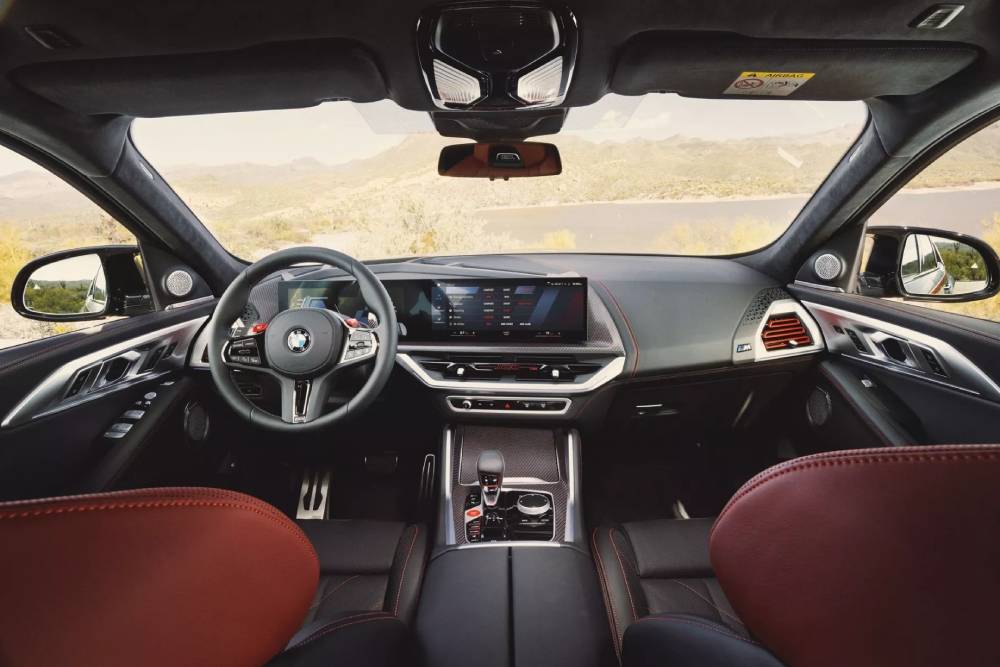 Όπως λέει και το όνομα, η Label Red φέρει κόκκινες πινελιές στο περίγραμμα των θηριωδών «νεφρών», εκείνο των παραθύρων, στα πλαστικά προστατευτικά χαμηλά στις πόρτες και στις 23άρες ζάντες, ενώ κατακόκκινο είναι το φόντο πίσω από το υπερ-SUV των 5,1 μέτρων και 2,75 τόνων. Κάτω από το κυριαρχικό αμάξωμα, ωστόσο, είναι που η XM Label Red κρύβει τα μεγάλα νέα για τη βαυαρική φίρμα.