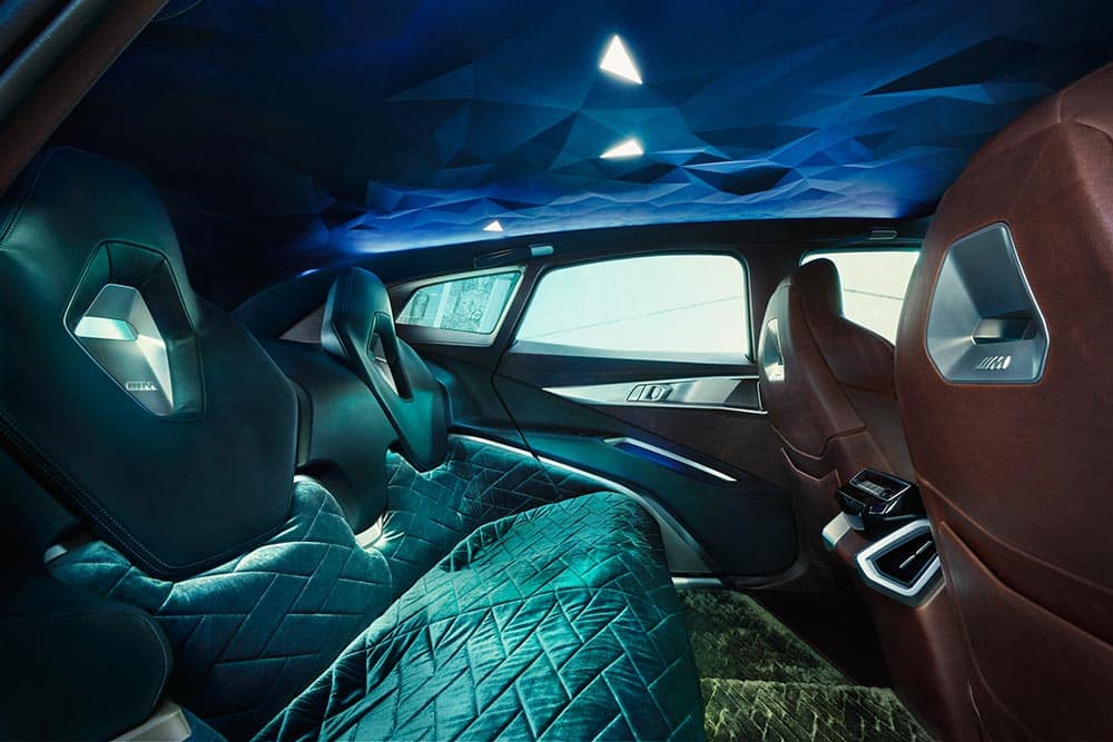 Το πιο εντυπωσιακό στοιχείο της καμπίνας είναι η επένδυση οροφής με την τρισδιάστατη πρισματική δομή. Ένας συνδυασμός άμεσου και έμμεσου φωτισμού δημιουργεί μια δομή τύπου γλυπτής τοιχογραφίας, προάγοντας την οροφή σε επίπεδα έργου τέχνης. Η curved οθόνη αφής του συστήματος πολυμέσων iDrive συνδυάζεται με τον ψηφιακό πίνακα οργάνων και ολοκληρώνει τον high tech διάκοσμο του XM.