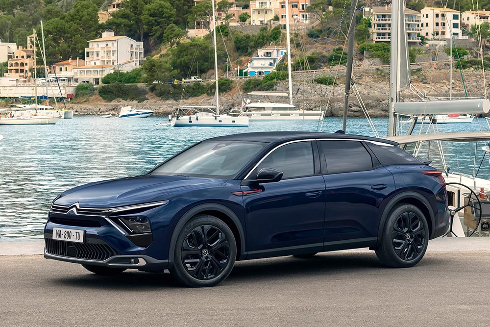 Εξωτερικά, το νέο Citroen C5 X Hypnos εισάγει ένα νέο, φινετσάτο μπλε χρώμα Eclipse Blue, συνδυασμένο με κόκκινες διακριτικές λεπτομέρειες στα πλαϊνά. Εκτός από το Eclipse Blue, το C5 X Hypnos θα είναι διαθέσιμο και σε Platinum Grey. Αποκλειστικές είναι και οι ζάντες αλουμινίου των 19 ιντσών σε απόχρωση μαύρου Onyx με διαμαντένιο εφέ, καλυμμένο με σκούρο βερνίκι.