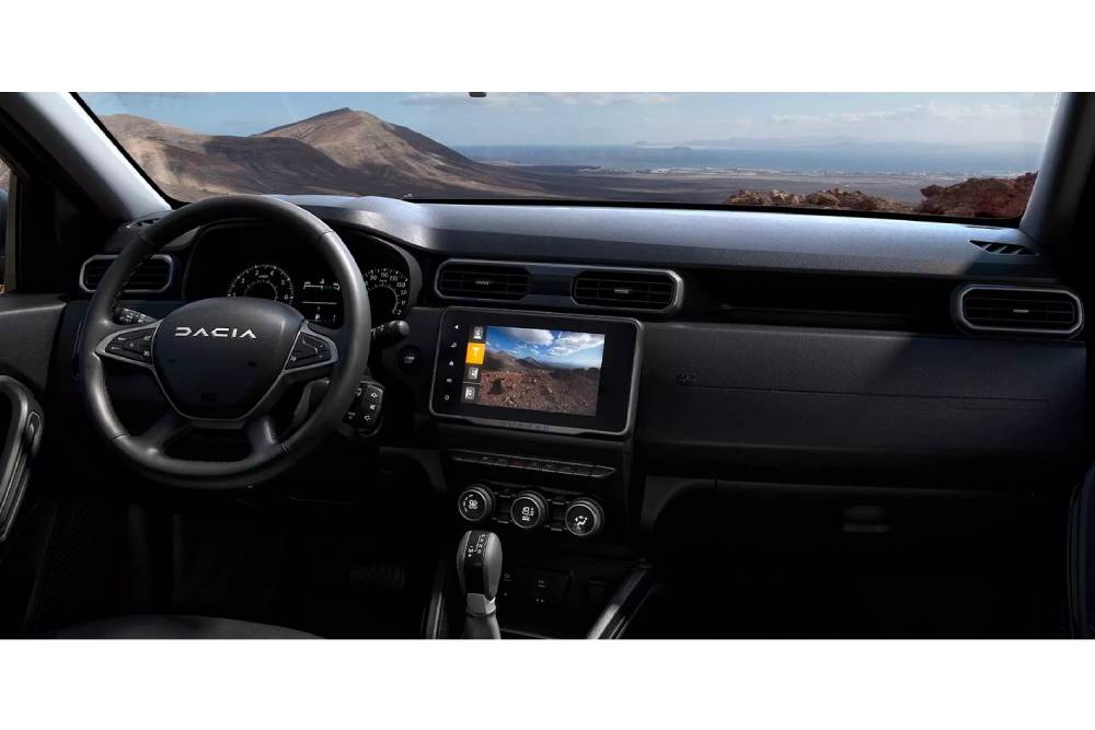 Η περίτεχνη γραμματοσειρά κεντρίζει το βλέμμα και στο εσωτερικό, όπου δεσπόζει στο τιμόνι. Η οθόνη αφής των 8 ιντσών για το σύστημα πολυμέσων Media Nav, ο αυτόματος κλιματισμός, οι κάμερες οπισθοπορείας-περιμετρικού ελέγχου αμαξώματος και η κάρτα hands-free, που αντικαθιστά το παραδοσιακό κλειδί (επίσης πρωτιά για Dacia), συγκαταλέγονται στο βασικό εξοπλισμό της ειδικής έκδοσης.