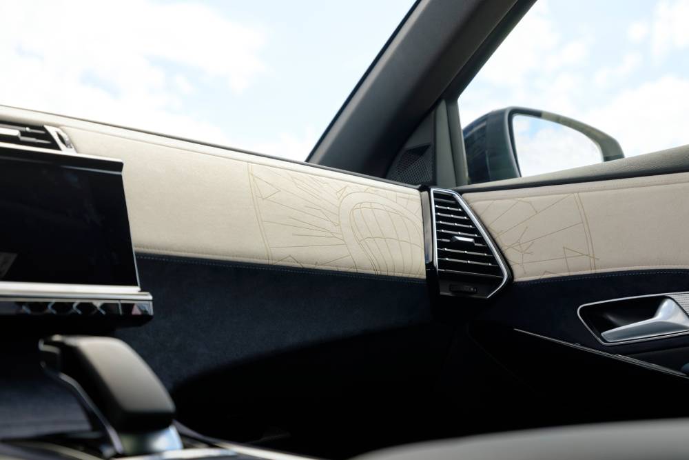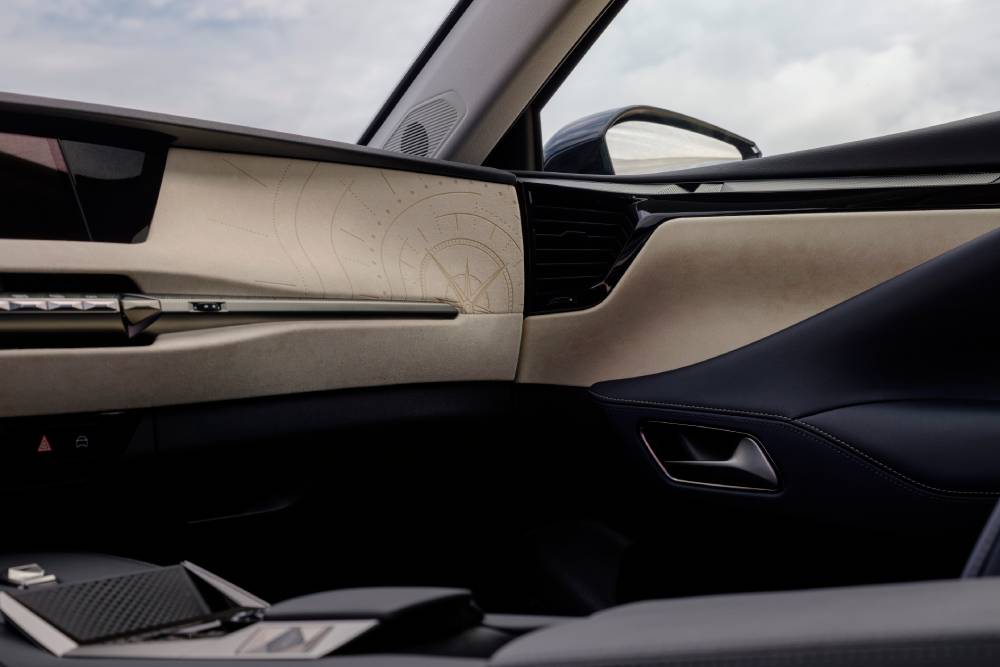 Με την κομψή και επιβλητική του σχεδίαση, που ενισχύεται από το βαθύ μπλε αμάξωμα σε Sapphire Blue, το DS 7 JULES VERNE εντυπωσιάζει με την πρώτη ματιά. Η αποκλειστική αυτή έκδοση, εμπνευσμένη από το ομώνυμο έργο του Ιουλίου Βερν, μετατρέπει κάθε διαδρομή σε μια αληθινή πρόσκληση για ταξίδι. Για να υπογραμμίσει τη μοναδικότητά του, το μοντέλο φέρει στο εμπρός μέρος ένα αποκλειστικό σήμα από βουρτσισμένο χρώμιο, το οποίο απεικονίζει την υπογραφή του συγγραφέα στο κέντρο μιας πυξίδας. Στο πλάι του αμαξώματος, αποτυπώνονται «γκιγιοσέ» (guilloche) μοτίβα σε σατινέ χρώμιο που συμβολίζουν αστερισμούς, συνοδευόμενα επίσης από την υπογραφή του Βερν. Οι ζάντες 19 ιντσών ολοκληρώνουν το εξωτερικό σύνολο, με χρυσό κεντρικό κάλυμμα, προσκαλώντας τον οδηγό να «πετάξει» πάνω από ανεξερεύνητους ορίζοντες. Στο εσωτερικό, η έκδοση DS 7 JULES VERNE αποπνέει μία ατμόσφαιρα εξερεύνησης και πολυτέλειας, αντάξια του πνεύματος των «Απίθανων Ταξιδιών».