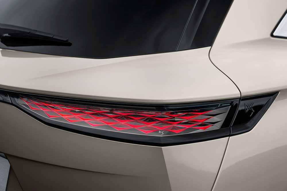 Στο πίσω μέρος επίσης ξεχωρίζουν από τα νέα φανάρια 3D LED, που δίνουν την ψευδαίσθηση της δίνης και έχουν πλέον σκούρο μεταλλικό φινίρισμα. Το καπό στο πορτμπαγκάζ έχει επανασχεδιαστεί με πιο έντονες γραμμές, ενώ το όνομα «DS AUTOMOBILES» αντικαθιστά το «CROSSBACK» και υπογράφει πλέον το πίσω μέρος του νέου DS 7.