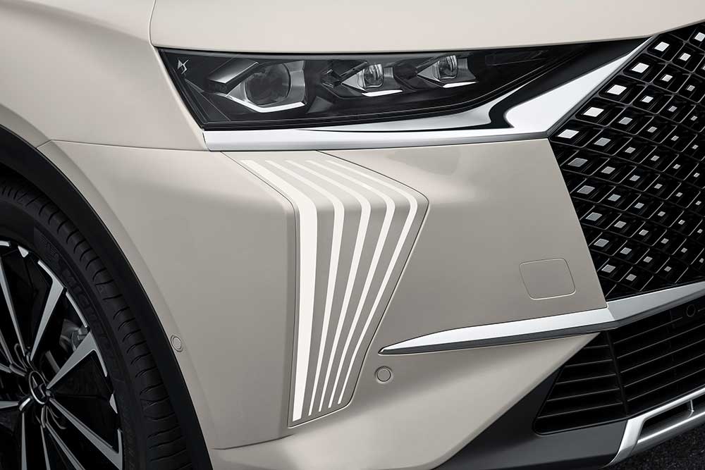 Το εμπρός μέρος ξεχωρίζει από τις πιο έντονες γραμμές του ανασχεδιασμένου προφυλακτήρα και των πιο λεπτών προβολέων DS Pixel LED Vision 3ης γενιάς, που συνδυάζονται με τα φώτα ημέρας DS Light Veil. Οι νέες φωτιστικές μονάδες LED Pixel του DS 7, βελτιστοποιούν την απόδοση του φωτός. Η φωτεινή δέσμη είναι πιο ισχυρή, με σημαντικά πιο μεγάλη εμβέλεια, η οποία πλέον έχει φτάσει έως και τα 380 μέτρα. Όταν η ταχύτητα του αυτοκινήτου είναι μικρότερη από 50 χλμ./ώρα, το πλάτος της δέσμης είναι 65 μέτρα. Το DS Light Veil αποτελείται από ένα φως ημέρας και τέσσερα κάθετα φωτεινά στοιχεία που αποτελούνται από 33 LED. Αυτή η καινοτομία ξεκινά από τη διαδικασία κατασκευής: η χαραγμένη με λέιζερ επιφάνεια είναι βαμμένη στο εσωτερικό της, για να της έχει μια εμφάνιση που εναλλάσσεται μεταξύ του λαμπερού φωτός και των τμημάτων που έχουν το χρώμα του αμαξώματος.