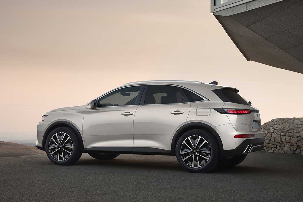 Την κίνηση του νέου DS 7 αναλαμβάνουν κυρίως plug-in υβριδικά σύνολα, με τον πετρελαιοκινητήρα 1.5 BlueHDi των 130 ίππων να αποτελεί την μοναδική μη PHEV επιλογή. Το E-Tense 225 διαθέτει κινητήρα βενζίνης PureTech 180 και ηλεκτροκινητήρα 110 ίππων, που τοποθετείται στο αυτόματο κιβώτιο ταχυτήτων οκτώ σχέσεων και μεταφέρει την κίνηση στους εμπρός τροχούς. Τα E-Tense 4×4 300 και E-Tense 4×4 360 παρουσιάζονται ως οι τετρακίνητες προτάσεις της εταιρείας, με τον 1.6οοάρη τετρακύλινδρο PureTech στα 200 άλογα και ηλεκτροκινητήρες 110 και 112 ίππων σε κάθε άξονα. Το κορυφαίο 360, δε, έχει δεχτεί την ειδική φροντίδα της DS Performance.