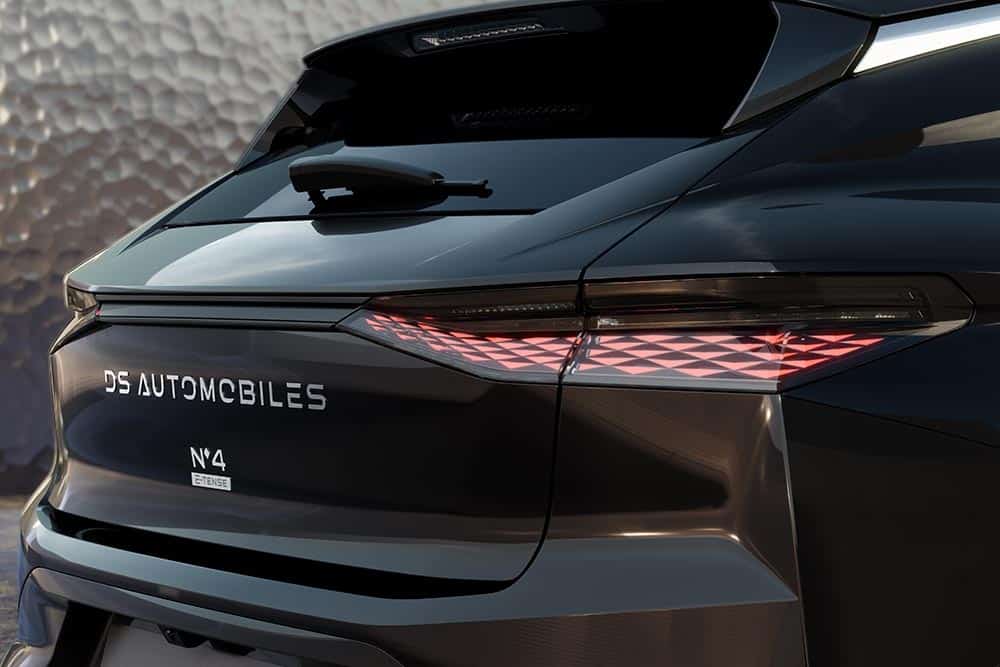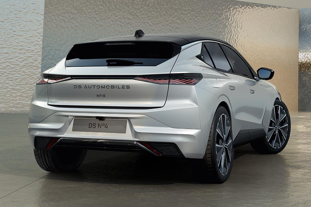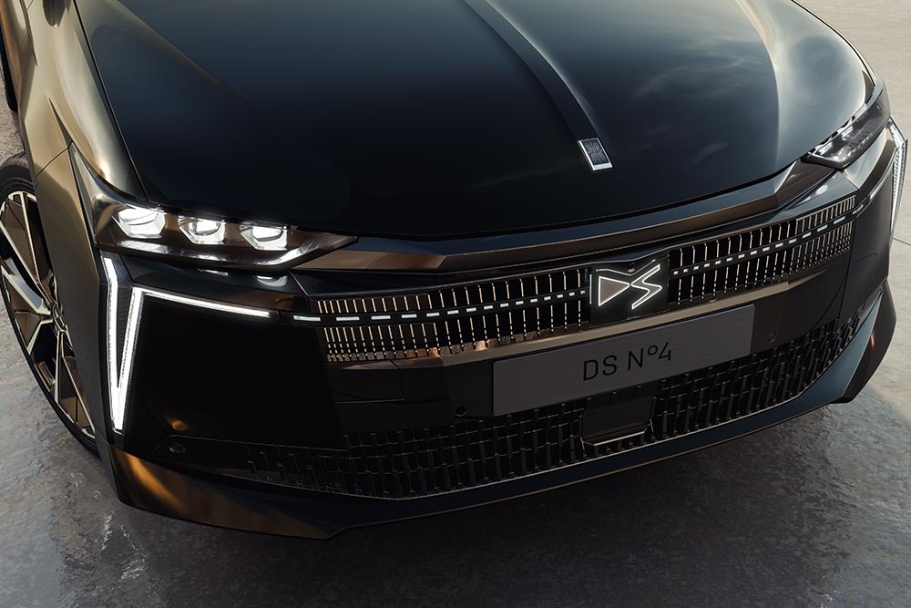 Το N°4 επιβάλλεται με την πλήρως ανασχεδιασμένη, πιο δυναμική εμπρόσθια όψη. Η νέα μαύρη μάσκα, φιλοξενεί μια χαρακτηριστική φωτεινή υπογραφή εμπνευσμένη από το πρωτότυπο DS E-Tense Performance και από το N°8. Η φωτεινή δέσμη εκτείνεται από τα άκρα του προφυλακτήρα και συγκλίνει προς το φωτιζόμενο λογότυπο DS στο κέντρο. Αυτή η νέα εμπρόσθια όψη με τη θεαματική φωτεινή υπογραφή υιοθετείται σε όλη τη γκάμα, ανεξαρτήτως συστήματος κίνησης ή έκδοσης. Τα 100% LED πίσω φωτιστικά σώματα ενσωματώνουν ένα νέο κάλυμμα ‘Dark Chrome’, το οποίο ενισχύεται από το χαραγμένο με λέιζερ ανάγλυφο εσωτερικό τους. Όλοι οι κινητήρες συνοδεύονται από ζάντες 19 ιντσών, ενώ προαιρετικά για την έκδοση Plug-in Hybrid διατίθενται και αποκλειστικές ζάντες 20 ιντσών.