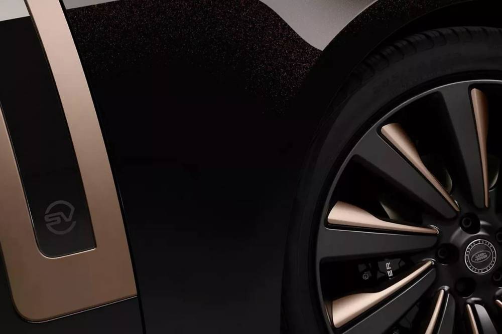 Διόλου τυχαία η σύνδεση της χώρας με το μεγαλοπρεπές αιλουροειδές, καθώς το 70% του παγκόσμιου πληθυσμού των τίγρεων βρίσκεται στη σαβάνα της Ινδίας. Το Range Rover SV Ranthambore Edition παίρνει λίγη από την αίγλη του «αντιβασιλέα της ζούγκλας», ντύνοντας το αμάξωμα σε ένα κατάμαυρο χρώμα και συνδυάζοντάς με χρυσαφί (Corinthian Bronze) πινελιές σε μάσκα, σήματα, καθρέπτες, πλευρικούς αεραγωγούς, προφυλακτήρες και πόρτα πορτμπαγκάζ. Μαζί τους ανθρακί ενθέσεις, που μαζί με τις χρυσαφί φτιάχνουν μια εικόνα που παραπέμπει στις λωρίδες της τίγρης. Το ίδιο ισχύει για τις ακτίνες των πολύ όμορφων 23άρων ζαντών αλουμινίου, επίσης σε αποκλειστικό φινίρισμα για το Ranthambore Edition.