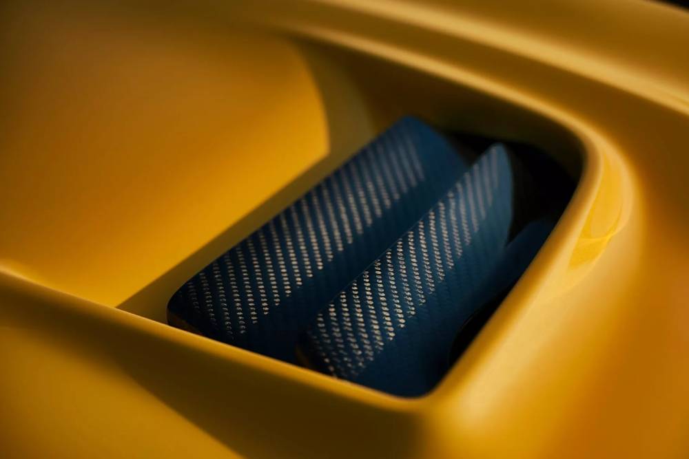 Ανθρακονημάτινα είναι και τα μπάκετ της Recaro στο εσωτερικό, συνοδευόμενα από επενδύσεις suede και αλουμινίου σε πολλές επιφάνειες. Φυσικά, εκεί που πάει κατευθείαν το μάτι είναι ο λεβιές του 6τάχυτου χειροκίνητου κιβωτίου, παρμένος κατευθείαν από το Civic Type R. Το Indy Yellow Pearl του αμαξώματος απαντάται και στην καμπίνα, στο περίγραμμα των αεραγωγών, τις ραφές, αλλά και το roll cage.