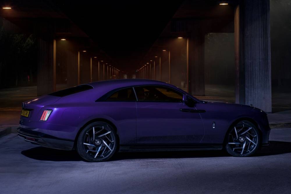 Καταρχάς, αν θέλει κάποιος μια Spectre Black Badge μπορεί να επιλέξει μέσα από τους 44.000 χρωματικούς συνδυασμούς που προσφέρει η Rolls-Royce. Το Vapour Violet των φωτογραφιών πάντως, μοιάζει ιδανική επιλογή – ειδικά όταν συνδυάζεται με τη φωτιζόμενη μάσκα Pantheon Grille και τα επίσης φωτιζόμενα σήματα «Black Badge», όλα τους εμπνευσμένα από τα φώτα νέον στα νυχτερινά κέντρα των 80’s και 90’s. Οι πανέμορφες 23άρες ζάντες σχεδιάστηκαν αποκλειστικά για την κορυφαία ηλεκτρική Rolls και προσφέρονται είτε με μερικώς χρωμιωμένο, είτε με total black φινίρισμα, ενώ το ίδιο ισχύει για τις χειρολαβές, το περίγραμμα των παραθύρων, τις ενθέσεις στους προφυλακτήρες και το διπλό «R» σε μάσκα – φτερά.