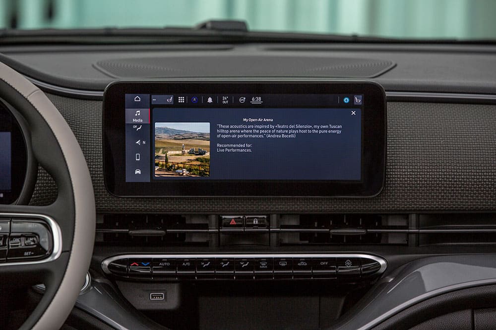 Μαζί με τον Μαέστρο Andrea Bocelli και τον γιο του -επίσης μουσικό- Matteo Bocelli, ο κ. Francois παρουσίασε το νέο 500 «La Prima by Bocelli», το πρώτο αμιγώς ηλεκτρικό αυτοκίνητο πόλης που εξοπλίζεται με την καινοτόμα τεχνολογία της JBL, «Virtual Venues». Μέσω μιας αποκλειστικής συνέντευξης, ο Ιταλός τενόρος εξήγησε τη δημιουργία αυτού του συστήματος υψηλής πιστότητας, το οποίο ρυθμίστηκε έτσι ώστε να ταιριάζει απόλυτα με την αθόρυβη μετακίνηση που προσφέρει ένα αμιγώς ηλεκτρικό αυτοκίνητο όπως το νέο 500.