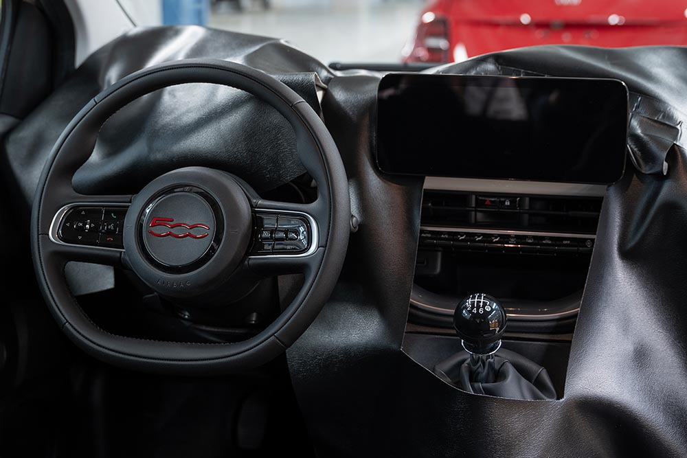 Επί του παρόντος η γραμμή βρίσκεται στην προβλεπόμενη διαδικασία ρυθμίσεων για την τελειοποίηση του αποτελέσματος, κάτι που αναμένεται να ολοκληρωθεί μέσα στο τέταρτο τρίμηνο του 2025. Αμέσως μετά, θα ενεργοποιηθεί η τελική φάση λειτουργίας. Εξωτερικά ο σχεδιασμός διατηρείται στο μεγαλύτερο μέρος του ίδιος με εκείνον του 500e, με τη διαφορά ότι ο εμπρός προφυλακτήρας θα είναι ανασχεδιασμένος για την απαραίτητη παροχή αέρα στο βενζινοκινητήρα. Αντίστοιχα και το εσωτερικό θα διατηρήσει τα κύρια στοιχεία από το ηλεκτρικό 500, εκτός από τη διαφοροποιημένη κεντρική κονσόλα. Στη βάση της και ψηλά τοποθετείται ο λεβιές ταχυτήτων του 6τάχυτου μηχανικού κιβωτίου, στη θέση των διακοπτών της αυτόματης μετάδοσης του 500e.