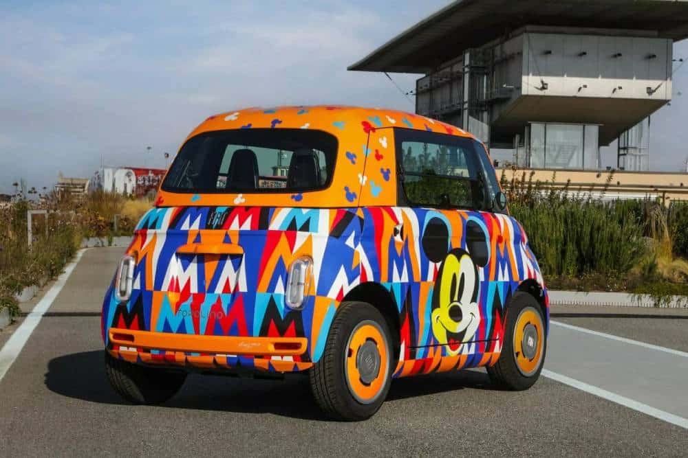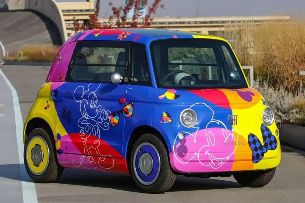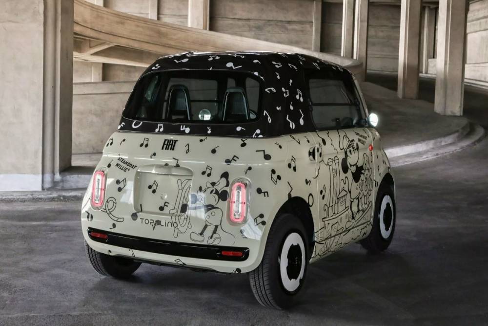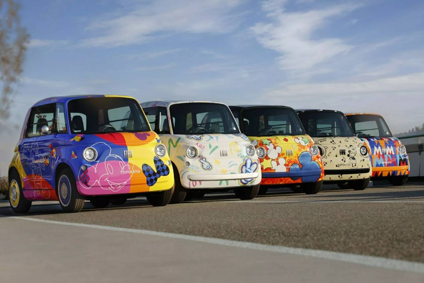 Για την ακρίβεια και πάλι οι Ιταλοί παίρνουν τα εύσημα, αλλά κατόπιν άδειας από τον τιτάνα του κινηματογράφου και της τηλεόρασης. Οι σχεδιαστές της Fiat φιλοτέχνησαν 5 Topolino σε μοτίβα της Disney, προκειμένου να γιορτάσουν τα 100 χρόνια από το πρώτο κινούμενο σχέδιο του Walt Disney. Τα 4 από τα 5 σχεδιάστηκαν από τις «πένες» του Fiat Centro Stile, ενώ το πέμπτο από τον Ιταλό γραφίστα της Disney, Giorgio Cavazzano. Το πρώτο αριστερά «Ποντικάκι» όπως βλέπουμε, που ντύνεται στα σχέδια του Μίκι Μάους, είναι το Abstract με πινελιές του πιο διάσημου ποντικού σε στυλ αφηρημένης τέχνης. Αυτό δίπλα του είναι το Street Version, μιμούμενο γκράφιτι, ενώ το μεσαίο αφορά το σχέδιο του Cavazzano.