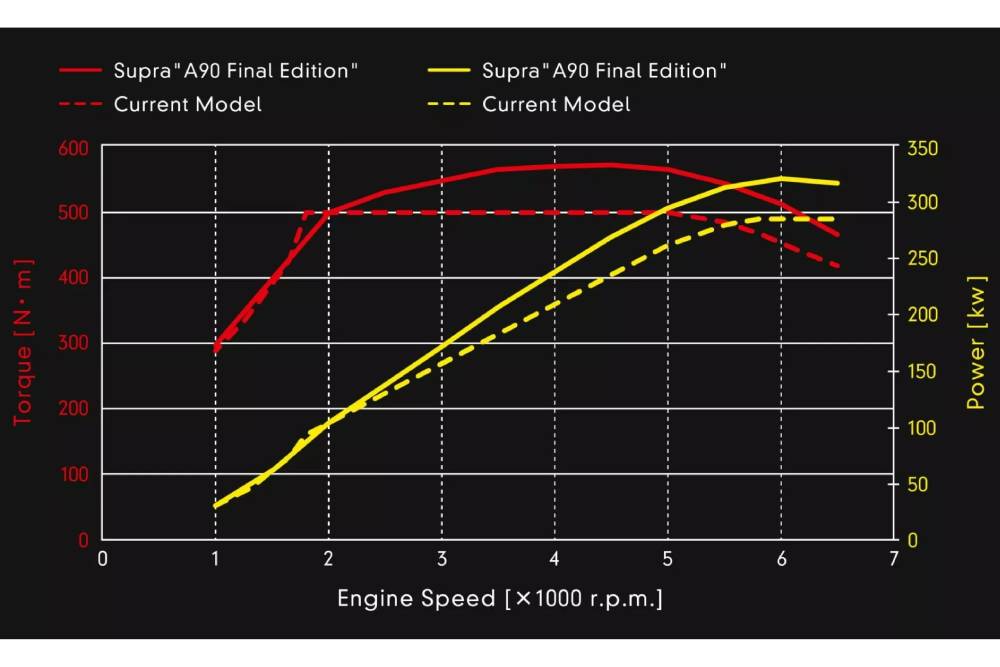 Παράλληλα με τη νέα ανάρτηση, οι μάστορες της Gazoo Racing έσφιξαν τις αντιστρεπτικές εμπρός-πίσω και αύξησαν τη γωνία κάμπερ στους εμπρός τροχούς, δημιουργώντας και την πιο track focused εργοστασιακή Supra μέχρι σήμερα – κι ας μην της έβαλαν τελικά σήματα GRMN. Για όσους θέλουν κάτι πιο ήπιο, η Toyota προσφέρει τη Supra Lightweight Evo. Επίσης αποκλειστικά με μηχανική μετάδοση, αναβαθμίσεις σε ανάρτηση-πλαίσιο και φορώντας αεροδυναμικό πακέτο, αλλά σε «νερωμένη» παραλλαγή συγκριτικά με τη Final Edition και με 387 ίππους/500 Nm κάτω από το καπό.