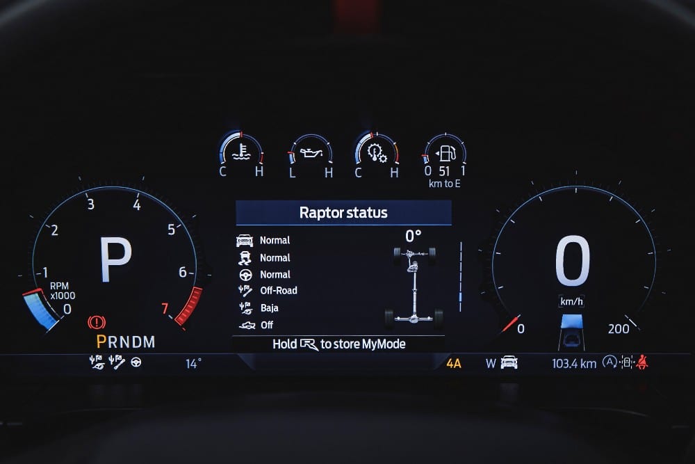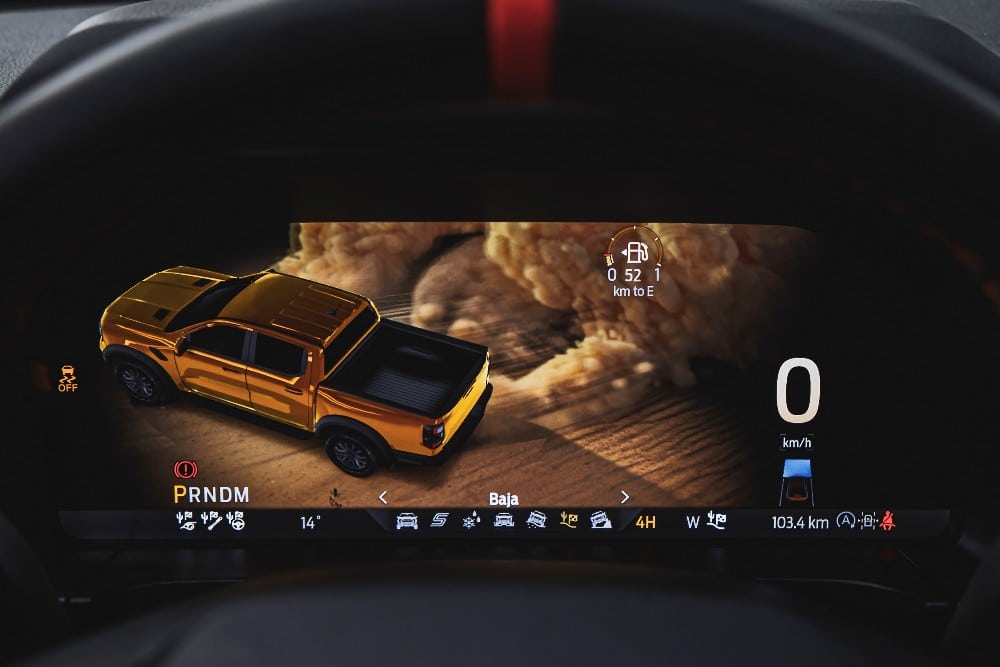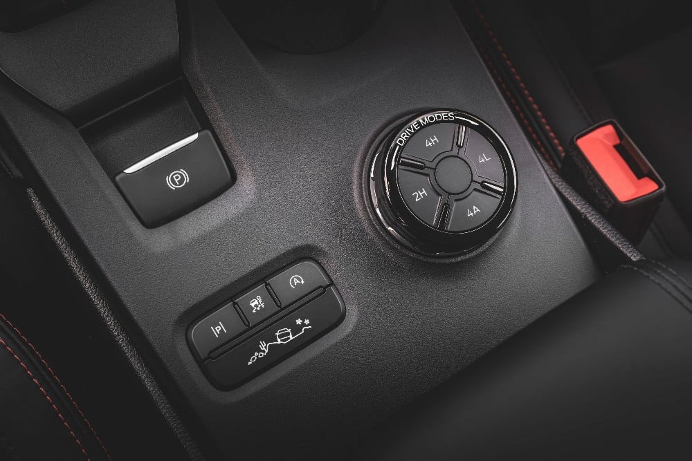 Για πρώτη φορά, το νέο Ranger Raptor εξοπλίζεται με ένα προηγμένο σύστημα τετρακίνησης που συνοδεύεται με ένα νέο, ηλεκτρονικά ελεγχόμενο on-demand κιβώτιο μεταφοράς δύο σχέσεων (αργό/γρήγορο). Αυτό συνδυάζεται με εμπρός και πίσω μπλοκέ διαφορικά, τα οποία αποτελούν ένα πολύτιμο στοιχείο για τους σκληροπυρηνικούς οπαδούς της εκτός δρόμου οδήγησης. Στη διαχείριση όλων των εδαφικών συνθηκών – από ομαλούς δρόμους μέχρι λάσπη και κακοτράχαλες διαδρομές και οτιδήποτε ενδιάμεσο – βοηθοί του νέου Ranger Raptor είναι τα 7 επιλέξιμα προφίλ οδήγησης. Μεταξύ αυτών περιλαμβάνεται και το πρόγραμμα Baja, που είναι προσανατολισμένο για off-road διαδρομές και διαμορφώνει τα ηλεκτρονικά συστήματα του οχήματος για μέγιστες επιδόσεις κατά τη γρήγορη οδήγηση εκτός δρόμου.