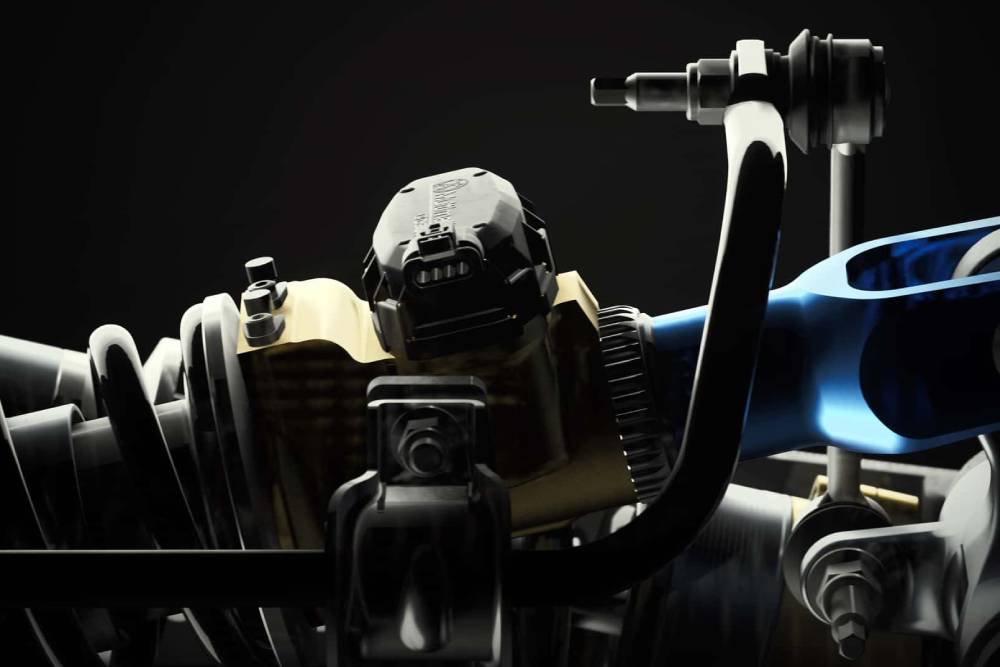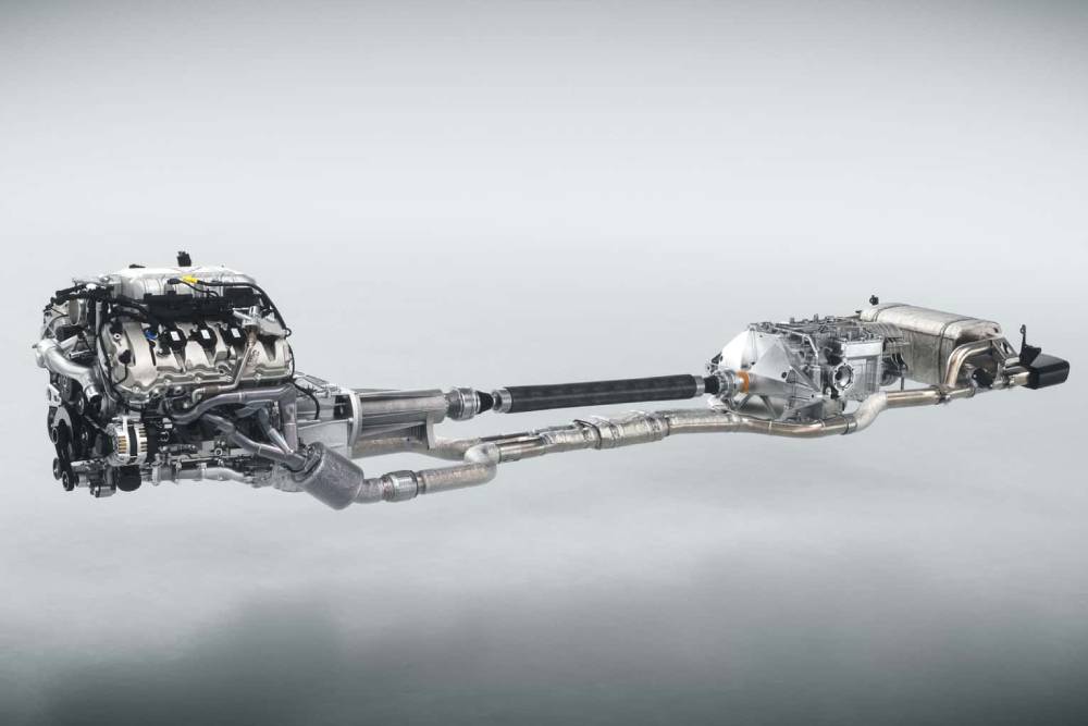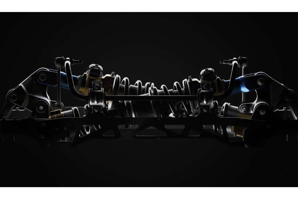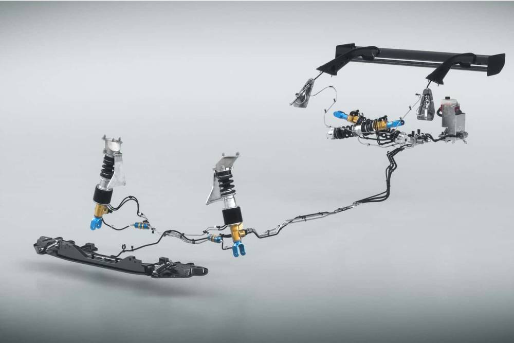 Ακόμα μεγαλύτερες και εκτενείς οι αλλαγές στην ανάρτηση και τη μετάδοση. Ξεκινώντας από τη δεύτερη, το κιβώτιο έχει μετακομίσει στον πίσω άξονα για βελτιστοποίηση της κατανομής μαζών, η οποία προσεγγίζει το 50-50. Εξ ου και η παρουσία αεραγωγών στα πίσω φτερά, αλλά και των διπλών βεντιλατέρ που βλέπουμε κάτω από την αεροτομή, για την ψύξη κιβωτίου-διαφορικού και των ψυγείων τους. Ένα 8άρι αυτόματο διπλού συμπλέκτη αναλαμβάνει την τροφοδοσία των πίσω τροχών, μέσω ανθρακονημάτινου άξονα, ενώ πίσω αλλάζει εντελώς και η διάταξη της ανάρτησης. Push rod αρχιτεκτονική πλέον, κάτι που εξαφανίζει το πορτμπαγκάζ, με ταυτόχρονη παρουσία ηλεκτρονικά ελεγχόμενων αμορτισέρ και υδραυλικό σύστημα, που μπορεί να χαμηλώνει την απόσταση έως 40 χλστ.