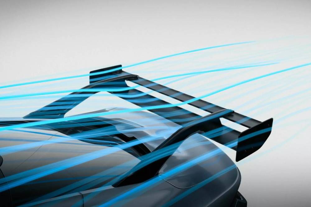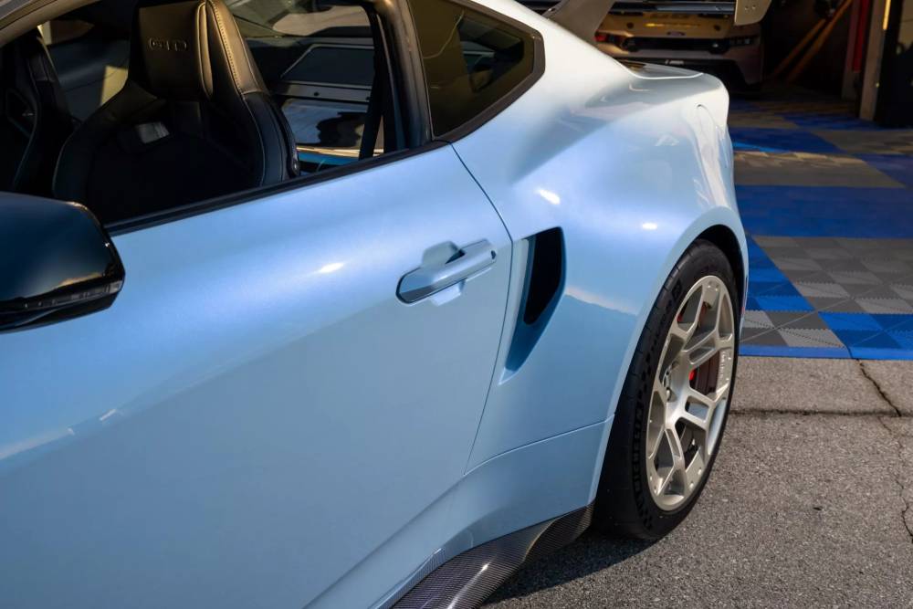 Η Mustang GTD βέβαια δεν είναι μόνο γκάζι στην ευθεία. Το αντίθετο, για την ακρίβεια, καθώς η Ford Performance έχει ως πρώτη προτεραιότητα τα ρεκόρ πίστας, με πρώτο και καλύτερο εκείνο του Nurburgring. Εξ ου και τα κεραμικά φρένα της Brembo, η ηλεκτρονικά ελεγχόμενη push rod ανάρτηση και η αεροδυναμική, παρμένη απευθείας από τα αγωνιστικά των πρωταθλημάτων αντοχής. Είναι χαρακτηριστικό πως η «ατελείωτη» ρυθμιζόμενη αεροτομή διαθέτει DRS (Drag Reduction System), που μειώνει την κλίση της πτέρυγας στις ευθείες (με το πάτημα ενός κουμπιού) προς όφελος της τελικής (έτσι πιάνει και τα 325 χλμ./ώρα).