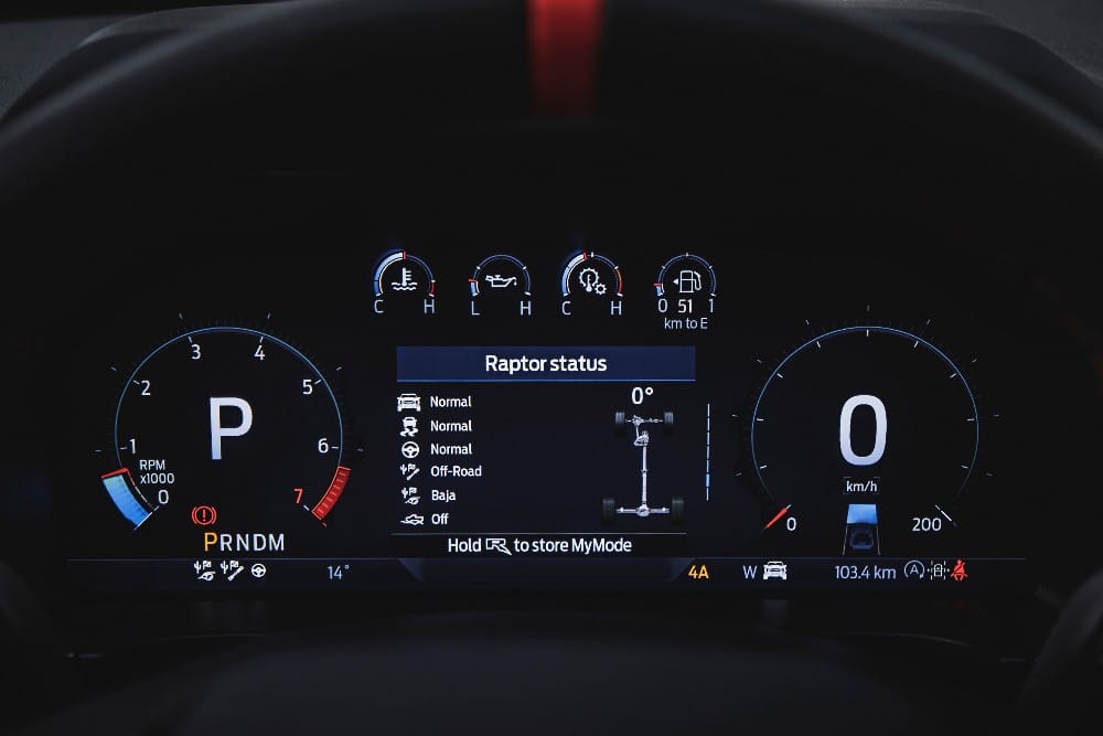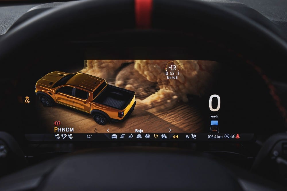 Οι επιβάτες του νέου Ranger Raptor απολαμβάνουν επίσης την τελευταία λέξη της ψηφιακής τεχνολογίας. Στη high tech καμπίνα του «θηρίου» της Ford δεσπόζει μία πλήρως ψηφιακή οθόνη 12,4 ιντσών, καθώς και μία κεντρική οθόνη αφής 12 ιντσών, σε διάταξη πορτραίτου, όπως και στην ηλεκτρικήMustang Mach-E, που υποστηρίζουν ιδανικά τα συστήματα ελέγχου, ενημέρωσης, συνδεσιμότητας και ψυχαγωγίας του αυτοκινήτου. Φυσικά ενσωματώνει το προηγμένο SYNC 4A νέας γενιάς της Ford που προσφέρει ασύρματη συμβατότητα Apple Car Play και Android Auto χωρίς έξτρα χρέωση. Επίσης, η οθόνη αφής στην κεντρική κονσόλα είναι συνδεδεμένη με μία κάμερα 360 μοιρών, που διευκολύνει το παρκάρισμα τόσο εντός πόλης όσο και εκτός αυτής.