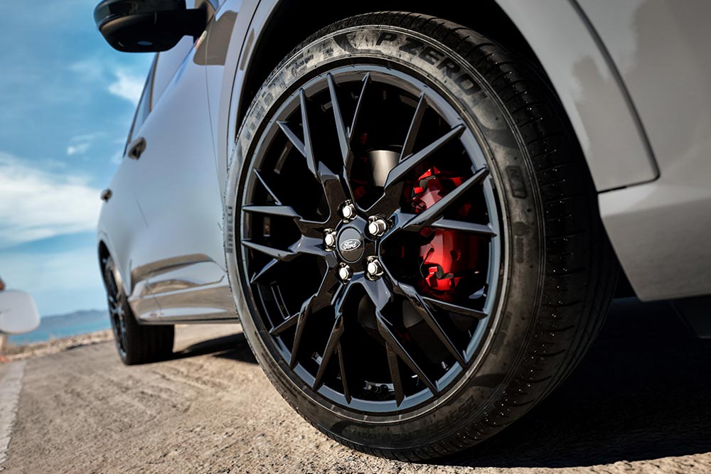 Στις σκουρόχρωμες λεπτομέρειες του πακέτου περιλαμβάνονται ζάντες αλουμινίου 20 ιντσών της Ford Performance, οι οποίες όχι μόνο δημιουργούν μία τολμηρή, σπορ εμφάνιση αλλά και τονίζουν την πάντα κομψή και μυώδη σχεδίαση του Ford Kuga, εξασφαλίζοντας ταυτόχρονα μία εντυπωσιακή αντίθεση με τις στάνταρ κόκκινες δαγκάνες του συστήματος πέδησης. Το πακέτο Black Package προσθέτει επίσης μαύρο φινίρισμα στα χαρακτηριστικά ένθετα που θυμίζουν «λεπίδες» και βρίσκονται στο κάτω μέρος του εμπρός προφυλακτήρα – στοιχεία μοναδικά για την έκδοση ST-Line X – καθώς και μαύρο ασορτί φινίρισμα για τα καλύμματα των εξωτερικών καθρεπτών. Το μαύρο χρώμα της οροφής ολοκληρώνει την συνολική εμφάνιση. Το νέο και αποκλειστικό αυτό πακέτο διατίθεται σε συνδυασμό και με τους έξι χρωματισμούς αμαξώματος του Kuga – Frozen White, Agate Black, Solar Silver, Bursting Green, Desert Island Blue και Magnetic – προσφέροντας στους πελάτες τη δυνατότητα να προσαρμόσουν το στυλ του οχήματός τους, είτε επιλέγοντας χρωματική αρμονία είτε έντονη αντίθεση, ανάλογα με τις προτιμήσεις τους.