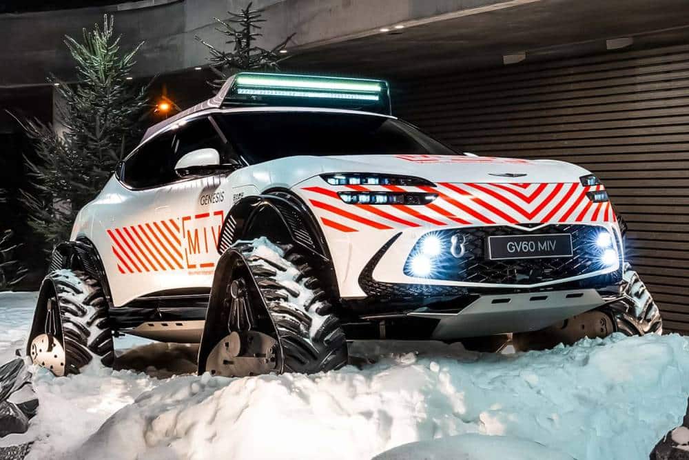 Η Genesis παρουσίασε το πιο «πολεμικό» μοντέλο της έως σήμερα, με την ερπυστριοφόρο μορφή του GV60 MIV Concept. Ενός οχήματος κατάλληλα διαμορφωμένου, για τη συμμετοχή σε αποστολές διάσωσης στα πιο κακοτράχαλα και, κυρίως, χιονισμένα εδάφη.