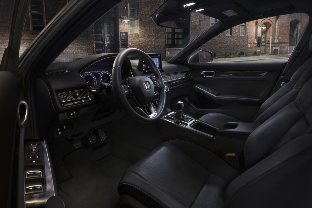 Η καμπίνα επιβατών θα είναι όμοια με του sedan, με τον ψηφιακό πίνακα οργάνων να κυμαίνεται από τις 7 ή 10,2 ίντσες, ανάλογα με την εξοπλιστική έκδοση. Το infotainment που έχει στη διάθεσή του ο οδηγός ξεκινά από τις 7 ίντσες, ενώ υπάρχει διαθέσιμη και μία οθόνη 9 ιντσών, όντας συμβατό με τα πρωτόκολλα επικοινωνίας Apple CarPlay και Android Auto. Στις κορυφαίες εκδόσεις θα υπάρχει διαθέσιμο και ένα νέο ηχοσύστημα της Bose με 12 ηχεία. Από κει και πέρα πολλά είναι τα συστήματα υποβοήθησης και ασφάλειας του οδηγού, καθώς το νέο Civic έχει στη διάθεσή του την αναβαθμισμένη σουίτα ασφαλείας Honda Sensing που διαθέτει μία κάμερα και οκτώ αισθητήρες σόναρ.
