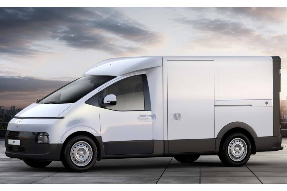 Το ST1 (εκ του Service Type 1, που είναι η κατηγορία) ενσωματώνει την εντυπωσιακή σχεδίαση του Staria μπροστά, με το αεροδυναμικό σχήμα του αμαξώματος και την ενιαία λωρίδα LED να φέρνουν αύρα από εκθεσιακά πρωτότυπα στα επαγγελματικά αυτοκίνητα. Οι προβολείς τοποθετούνται στο πλάι του άβαφου προφυλακτήρα, ο οποίος μαζί με τους ατσάλινους τροχούς δημιουργεί μια τρομερή μεταμοντέρνα εικόνα όπως συνδυάζονται με το φαντασμαγορικό look μπροστά. Το υπόλοιπο ST1 είναι κανονικό cargo van, όπερ σημαίνει πως από την καμπίνα επιβατών και πίσω «κουμπώνουν» ποικίλες διαμορφώσεις, από ψυγείο μέχρι καρότσα. Αυτή είναι και μια από τις κυριότερες διαφορές του ST1 από το επαγγελματικό Staria Load.