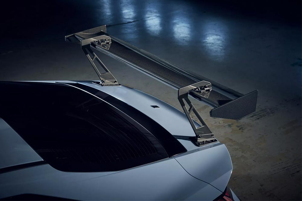 Εξωτερικά το πρώτο στοιχείο που τραβά αμέσως το ενδιαφέρον σε όποιον βλέπει το Elantra N TCR Edition, δεν είναι άλλο από την τεράστια πίσω ελαφριά αεροτομή Carbon Swan Neck, η οποία είναι ρυθμιζόμενη για να παρέχει βέλτιστες ρυθμίσεις κάθετης δύναμης για διάφορες συνθήκες οδήγησης και προτιμήσεις. Διαθέτει επίσης εξαιρετικά άκαμπτους, ελαφρούς σφυρήλατους τροχούς N TCR 19 ιντσών και είναι εξοπλισμένο στάνταρ με φρένα τεσσάρων εμβόλων N Performance. Στο εσωτερικό του υπάρχουν τιμόνι Alcantara εμπνευσμένο από αγώνες, Performance Blue ζώνες ασφαλείας και αποκλειστικό σήμα TCR Edition.