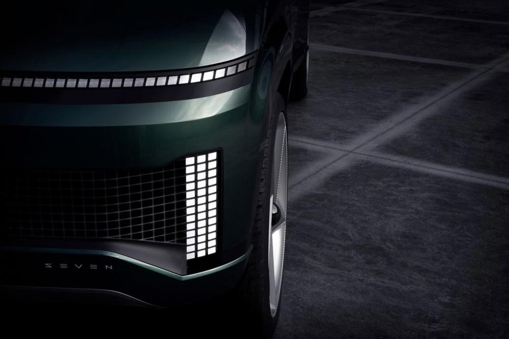 Η νέα εποχή της Hyundai, όσο αφορά την ηλεκτροκίνηση, δείχνει πως στοχεύει στη μοντέρνα σχεδίαση των αμαξωμάτων της, αλλά και στη χρησιμοποίηση σύγχρονων τεχνολογιών. Το ολοκαίνουργιο ηλεκτρικό μοντέλο που ανήκει στη κατηγορία των SUV, φαίνεται πως δίνει επιπλέον ιδιαίτερη έμφαση στον σχεδιασμό του αμαξώματος και του εσωτερικού. Εξωτερικά, η αρχιτεκτονική φωτισμού του SEVEN ορίζεται από τα Parametric Pixels, τη μοναδική σχεδιαστική ταυτότητα της μάρκας ΙΟΝΙQ, όπως έχουμε δει και στο IONIQ 5.