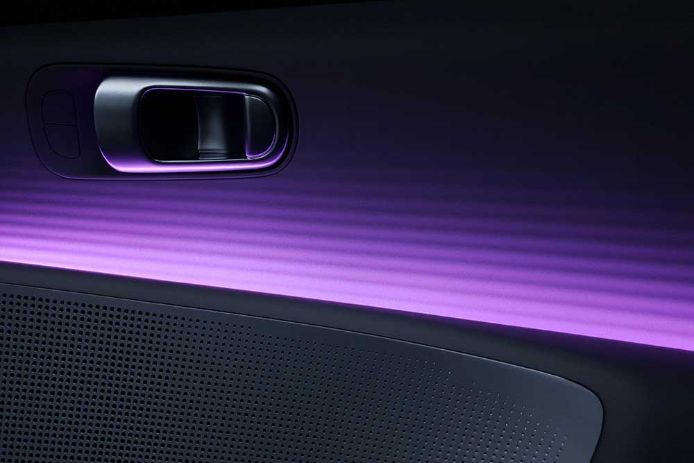 Ο φουτουριστικός χαρακτήρας δεν θα μπορούσε να μη συνεχίζεται στο εσωτερικό, όπου κυριαρχεί ο μαγευτικός ambient φωτισμός μέσω λαμπτήρων neon και ενιαία διάταξη πίνακα οργάνων – συστήματος πολυμέσων στην κορυφή του ταμπλό, που αποτελείται από δυο οθόνες 12,4 ιντσών έκαστη. Οι πόρτες χαρακτηρίζονται από την παντελή έλλειψη κουμπιών και τις μεγάλες εσοχές, που λειτουργούν ως αποθηκευτικοί χώροι, ενώ η κεντρική κονσόλα φιλοξενεί τους διακόπτες των παραθύρων και της ρύθμισης των καθρεπτών, οι οποίοι είναι κάμερες (σε όποια αγορά επιτρέπεται).