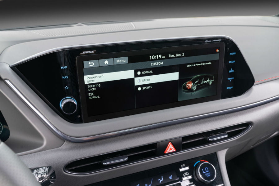 Ο ανασχεδιασμένος προφυλακτήρας με τις γωνιώδεις εισαγωγές αέρα, το μαύρο χρώμα σε αυτές και τη μάσκα, αλλά και το σήμα «N-Line» προειδοποιεί για τις διαθέσεις του κορεατικού μεγαλομεσαίου. Οι 19άρες ζάντες, οι τραπεζοειδείς απολήξεις της εξάτμισης και ο ψευδο-διαχύτης στον πίσω προφυλακτήρα, μαζί με το διακριτικό χείλος στο τελείωμα της πόρτας του πορτμπαγκάζ, ολοκληρώνουν το δυναμικό πακέτο της εμφάνισης.