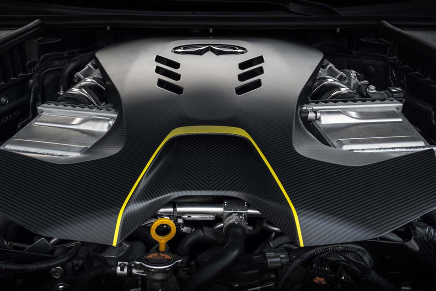 Το Infiniti Project Black S συνδυάζει την τεχνολογία αυτή με έναν θερμικό κινητήρα βενζίνης V6, twin-turbo χωρητικότητας 3.0 λίτρων. Η συνδυαστική του ισχύς είναι στα 571 άλογα και χαρίζει 0-100 χλμ./ώρα σε λιγότερο από τέσσερα δευτερόλεπτα.