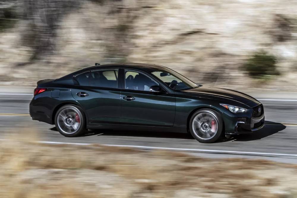 Η πολύ «σπέσιαλ» φορεσιά του ιαπωνικού sport sedan συνοδεύεται από μαύρα σήματα, που χρησιμοποιούνται ώστε να μην αποσπάται το βλέμμα από τα χρώματα του αμαξώματος. Οι 19άρες ζάντες παραμένουν ανθρακί, έχοντας πίσω τους κόκκινες δαγκάνες φρένων, που αριθμούν 4 έμβολα μπροστά και 2 πίσω. Αλλαγές δεν υπάρχουν στα μηχανικά μέρη, όπερ σημαίνει πως κάτω από το καπό αναλαμβάνει ο 3.0 V6 twinturbo των 406 ίππων και 475 Nm, που συναντάμε και στο νέο Nissan Z. Ένα 8άρι αυτόματο κιβώτιο μεταφέρει την ισχύ στον πίσω άξονα, εξασφαλίζοντας 0-100 χλμ./ώρα σε 5,1 δλ. και τελική 250 χλμ./ώρα (ηλεκτρονικά περιοριζόμενη).