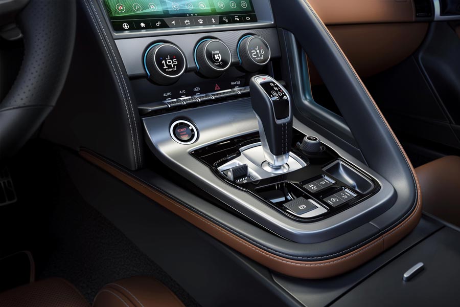Περνώντας στο εσωτερικό της ανανεωμένης Jaguar F-Type, οι αλλαγές εστιάζονται στο νέο διαμορφώσιμο ψηφιακό πίνακα οργάνων των 12,3 ιντσών και στο αναβαθμισμένο σύστημα πολυμέσων. Παράλληλα, κυριαρχεί η πολυτέλεια και οι δερμάτινες επενδύσεις που καλύπτουν σχεδόν κάθε επιφάνεια της καμπίνας.