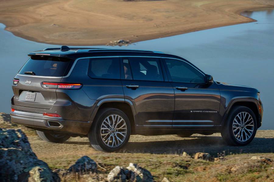 Το εμπρός μέρος είναι εντελώς διαφορετικό, αντλώντας έμπνευση από το πρωτότυπο Grand Wagoneer. Τα λεπτά φωτιστικά σώματα, η παραδοσιακή μάσκα με τις 7 γρίλιες και ο προφυλακτήρας με την ορθογώνια εισαγωγή ξεχωρίζουν το L από το απλό Grand Cherokee. Στο πίσω μέρος τα μακρόστενα φανάρια επίσης είναι η ειδοποιός διαφορά, ενώ στο προφίλ το μεγαλύτερο μήκος αιχμαλωτίζει το μάτι. Το «Large» Jeep εκτείνεται στα 5.204 χλστ., σημειώνοντας αύξηση σχεδόν 40 εκατοστών συγκριτικά με το απλό (4.846 χλστ.)! Αυξημένο είναι και το μεταξόνιο, στα 3.091 χλστ. από 2.946.