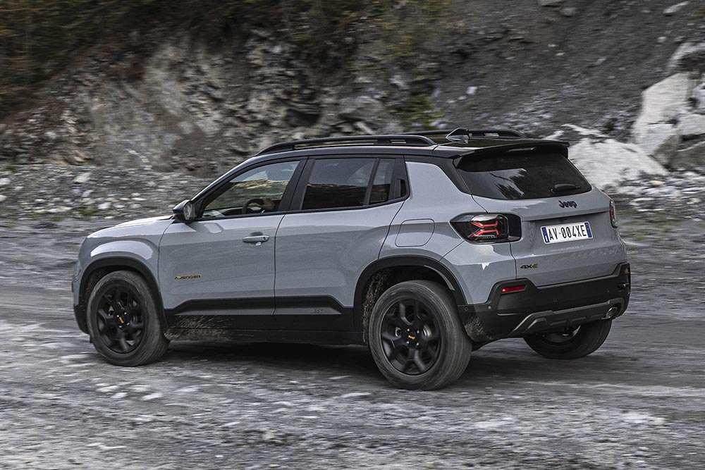 Η πιο ουσιαστική διαφορά ωστόσο βρίσκεται στο πίσω σύστημα με την ανεξάρτητη ανάρτηση Multilink για ακόμα καλύτερη άνεση και κύλιση στην εκτός δρόμου οδήγηση. Ανάμεσα στους πίσω τροχούς βρίσκεται τοποθετημένος ένας νέος ηλεκτρικός κινητήρας με ισχύ 28 hp και ροπή 88 Nm, ο οποίος τους κινεί μέσω μειωτήρα με λόγο μετάδοσης 22,7:1. Έτσι η ροπή φτάνει ισχυρά πολλαπλασιασμένη στους τροχούς και επαρκεί για να εξασφαλίζει στο Avenger 4xe το 20% της συνολικής πρόωσης ακόμα κι εάν οι εμπρός τροχοί έχουν μηδενική πρόσφυση. Με τη συνδρομή δε όλων το κινητήρων του, το τετρακίνητο Avenger μπορεί να σκαρφαλώνει σε κλίση έως και 40%, ακόμα και σε ολισθηρά εδάφη. Πολύ σημαντική είναι και η πληροφορία ότι ο πίσω ηλεκτροκινητήρας μπορεί να τροφοδοτείται αδιάκοπα με ενέργεια, οπότε η τετρακίνηση να λειτουργεί χωρίς κανένα χρονικό περιορισμό.