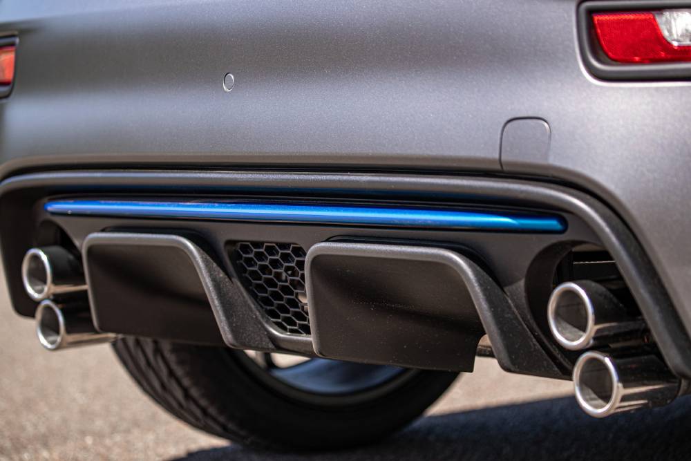 Πριν πάμε στο «ζουμί», να αναφέρουμε πως εμφανισιακά το F595 διαχωρίζει τη θέση του από τα υπόλοιπα γρήγορα «500αράκια» χάρις στις μπλε λεπτομέρειες σε προφυλακτήρα, διαχύτη και καθρέπτες, ενώ η εμφανέστερη όλων εντοπίζεται στο πίσω μέρος. Εκεί, δηλαδή, που όχι μόνο συναντάμε τετραπλές απολήξεις της εξάτμισης, αλλά και κάθετα τοποθετημένες ανά δύο εκατέρωθεν του διαχύτη!