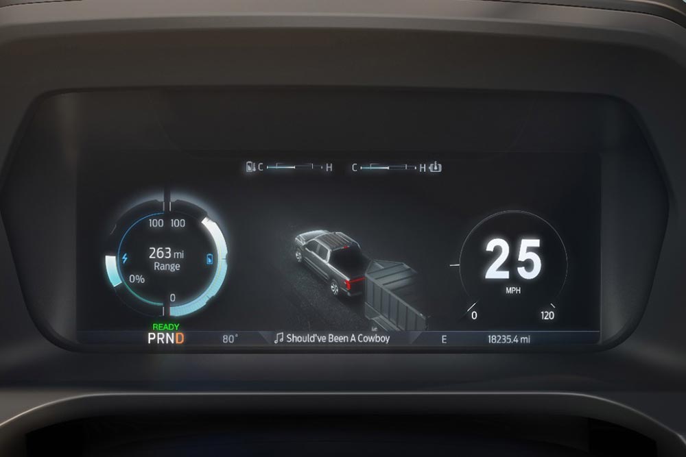 Πρωτιά έχουμε και για το νέο infotainment SYNC® 4A, το οποίο θα ενσωματώνεται στις εκδόσεις Lariat και Platinum. Η κάθετα τοποθετημένη οθόνη αφής των 15,5 ιντσών έχει σχεδιαστεί για να προσαρμόζεται στη συμπεριφορά του οδηγού. Επιπλέον προσφέρεται η δυνατότητα φωνητικών εντολών, υπηρεσίες πλοήγηση μέσω cloud, αλλά κι ασύρματη πρόσβαση στις αγαπημένες σας υπηρεσίες: Apple CarPlay, Android Auto, Amazon Alexa και SYNC AppLink. Η ψηφιακή εμπειρία του τυχερού αγοραστή του F-150 Lightning αναβαθμίζεται ακόμα περισσότερο με την ενσωμάτωση του ψηφιακού πίνακα οργάνων των 12 ιντσών. Αυτός παραμετροποιείται σύμφωνα με τις προτιμήσεις πληροφόρησης του οδηγού, προσφέροντας ένδειξη μέχρι και για τη θερμοκρασία της μπαταρίας!
