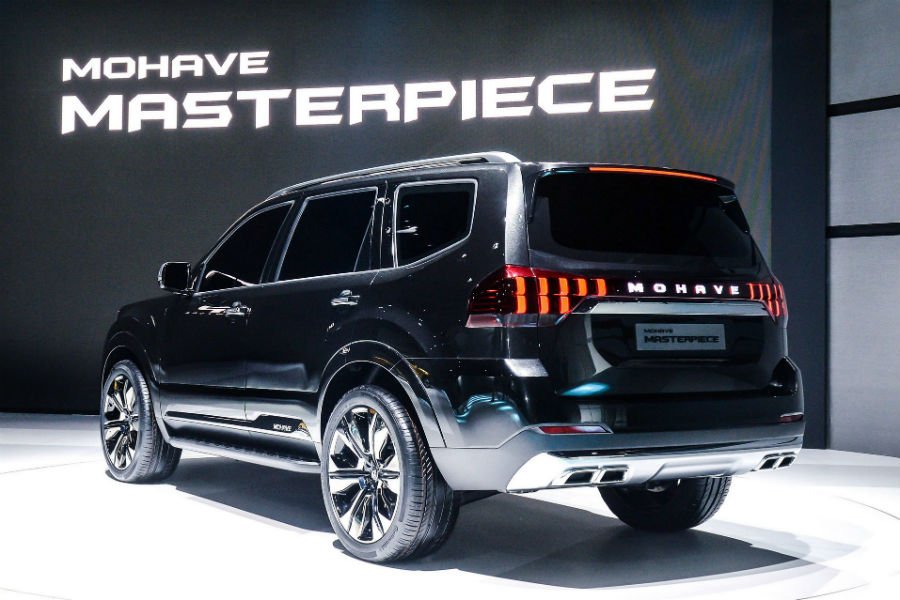 Το Mohave Masterpiece είναι ένα μεγάλο SUV, με επιβλητική εμφάνιση και λεπτομέρειες που φωνάζουν Αμερική, όπως η εκτεταμένη χρήση χρωμίου σε αμάξωμα και ζάντες. Δεν είναι τυχαία η επιλογή του ονόματος «Mohave», δείχνοντας ξεκάθαρα το κοινό στο οποίο απευθύνεται. Ξεχωρίζει η μάσκα με τα κάθετα LED φωτιστικά σώματα, που χαρίζει ένα άκρως περιπετειώδες, απειλητικό και εμφατικό παρουσιαστικό. Στο πίσω μέρος, το κάθετο μοτίβο των LED συνεχίζεται στα φωτιστικά σώματα, ενώ στο σύνολο του αμαξώματος κυριαρχούν οι ευθείες γραμμές και η «τετράγωνη» τεχνοτροπία.