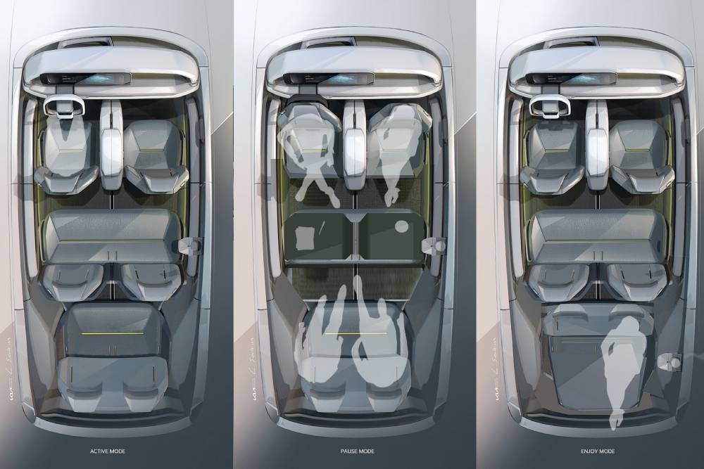 Στο Pause Mode η πρώτη σειρά περιστρέφεται προκειμένου να κοιτάζει την τρίτη, με τη δεύτερη να μετατρέπεται σε τραπέζι. Στο Enjoy Mode όλες οι θέσεις περιστρέφονται στις 180 μοίρες, η πόρτα του πορτμπαγκάζ ανοίγει και οι επιβάτες απολαμβάνουν τη θέα, έχοντας την πανοραμική ηλιοροφή να φροντίζει για την εκ των άνωθεν θέα.