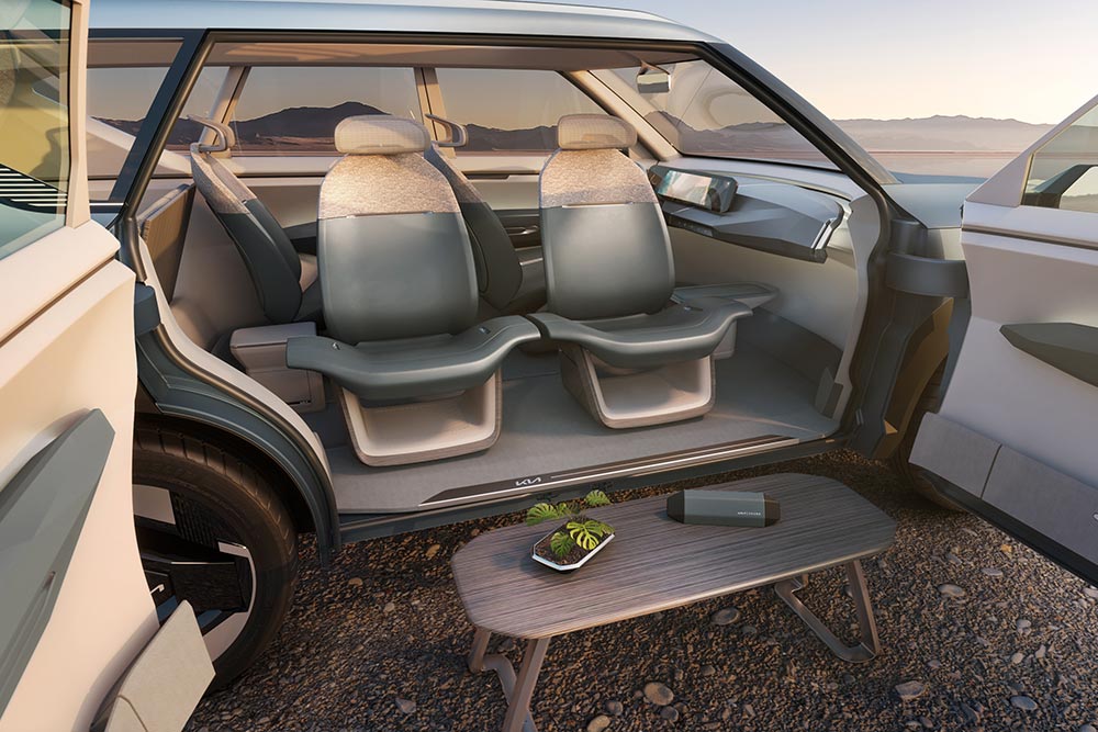 Το εντελώς επίπεδο δάπεδο και ο γενναιόδωρος χώρος που βρίσκεται μέσα στην καμπίνα δημιουργούν έναν «χώρο συνύπαρξης», όπου η φύση, οι άνθρωποι και η τεχνολογία μπορούν να ενωθούν αρμονικά. Σε συνδυασμό με τα σχεδιαστικά θέματα Healing, Caring και Re-charging, το εσωτερικό του Concept EV5 προσφέρει το τέλειο περιβάλλον για χαλάρωση των επιβατών.